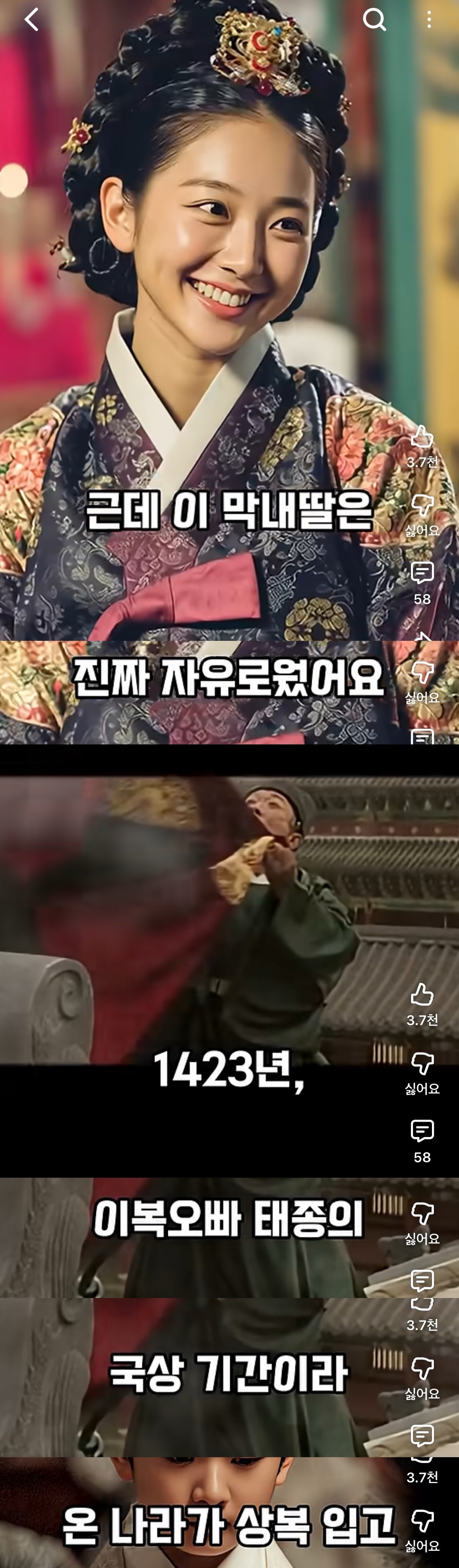 작성자딸기팥빙수 작성시간 25.10.15 진짜 개꿀이다 건국왕이 다 늙어서 낳은 막내딸... 언니오빠들이 나이차가 워낙 많이지니까 권력적으로 경계도 안당할거고... 권력의 콩고물만 낼름 먹다갈수있네