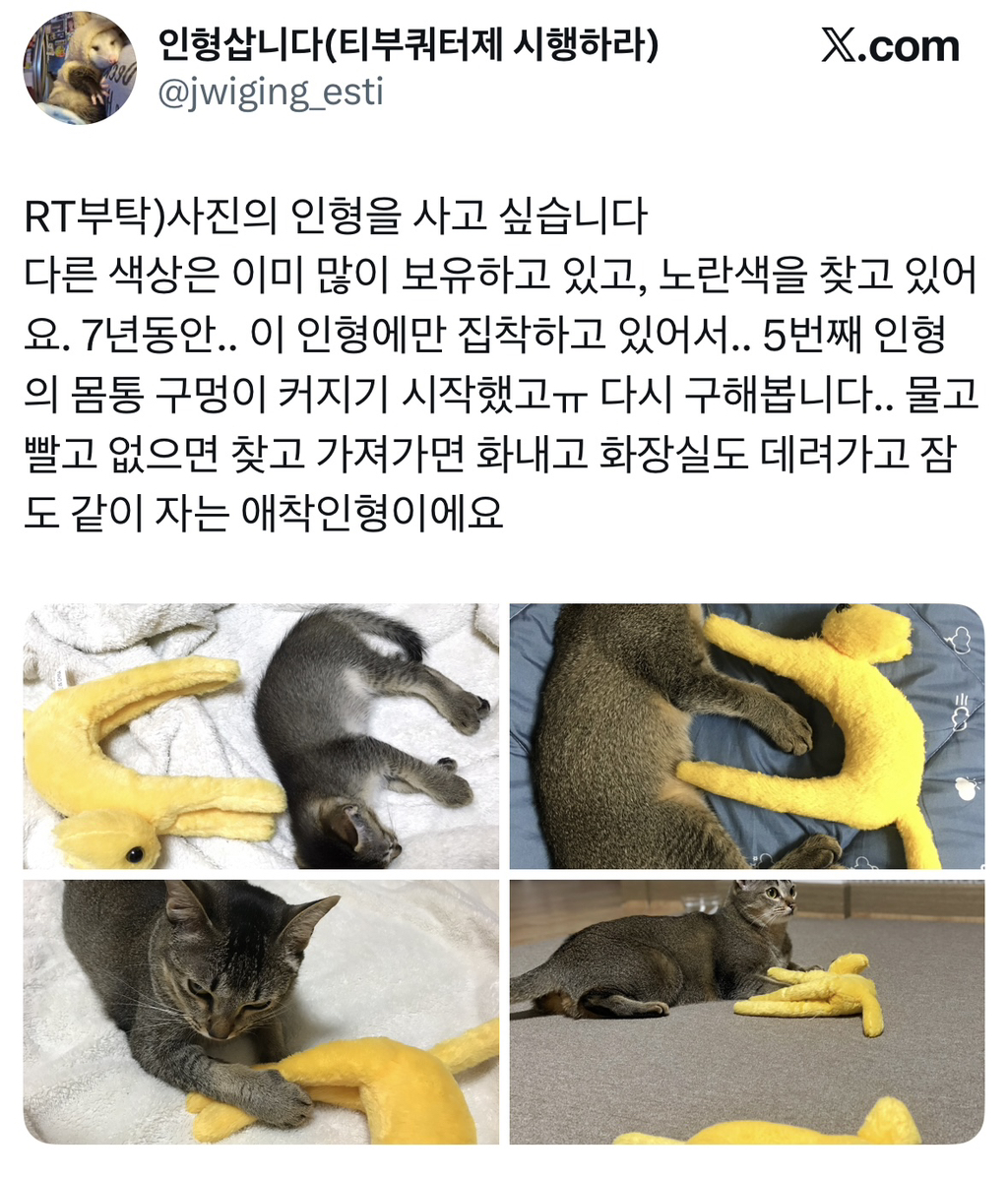 [흥미돋]고양이 애착인형 삽니다 작성자뿌치뿌치래빗|작성시간25.10.15|조회수46,346 목록 댓글 42 글자크기 작게가 글자크기 크게가 출처: https://x.com/jwiging_esti/status/1671872511330615296?s=46ㄱㅇㅇ 다음검색 현재 게시글 추가 기능 열기 북마크 공유하기 신고 센터로 신고 댓글 댓글 42 댓글쓰기 답글쓰기 댓글 리스트 답댓글 작성자치즈젤리 구경하세요 | 작성시간 25.10.16 인천몽키스패너 아 그런거였어??ㅋㅋㅋㅋㅋㅋㅋㅋㅋㅋㅋ이유를 알고나니 더 귀여워 작성자오늘도 누워있음 | 작성시간 25.10.16 ㄱㅇㅇ ㅠㅠㅠㅠㅠㅠㅠㅠㅠㅠㅠ 작성자새콤핑 | 작성시간 25.10.16 우리애기도 애착인형 있어 ㅠㅠ 다이소거라 똑같은거 보일 때 마다 하나씩 사옴.. 같은 라인의 인형 다른색도 있어서 사줘봤는데 무족권 삼색이만 좋아함 ; 이미지 확대 답댓글 작성자새콤핑 | 작성시간 25.10.16 대충 이런상태임.. 이미지 확대 작성자고먐미빵뎅이 | 작성시간 25.10.16 하 귀여워ㅠㅠ 댓글 전체보기
