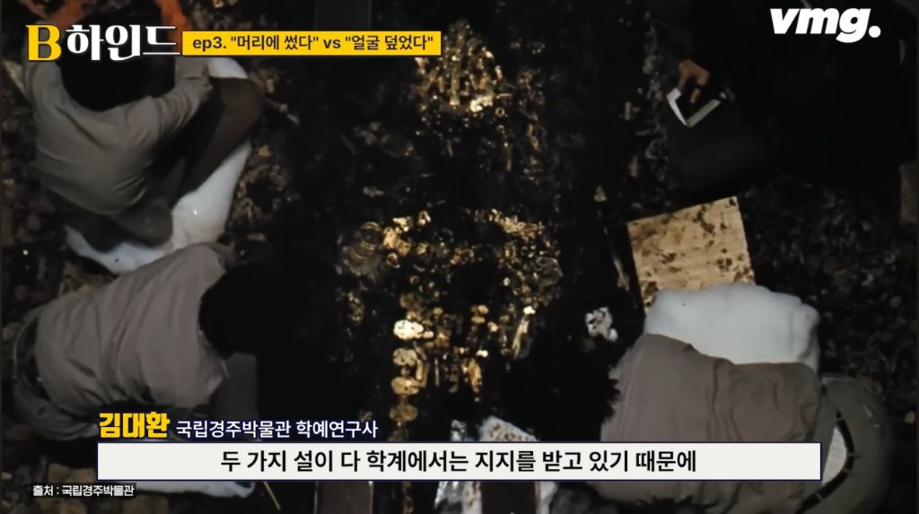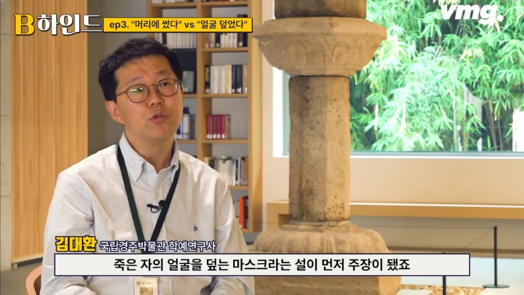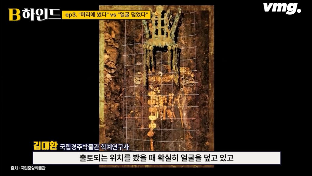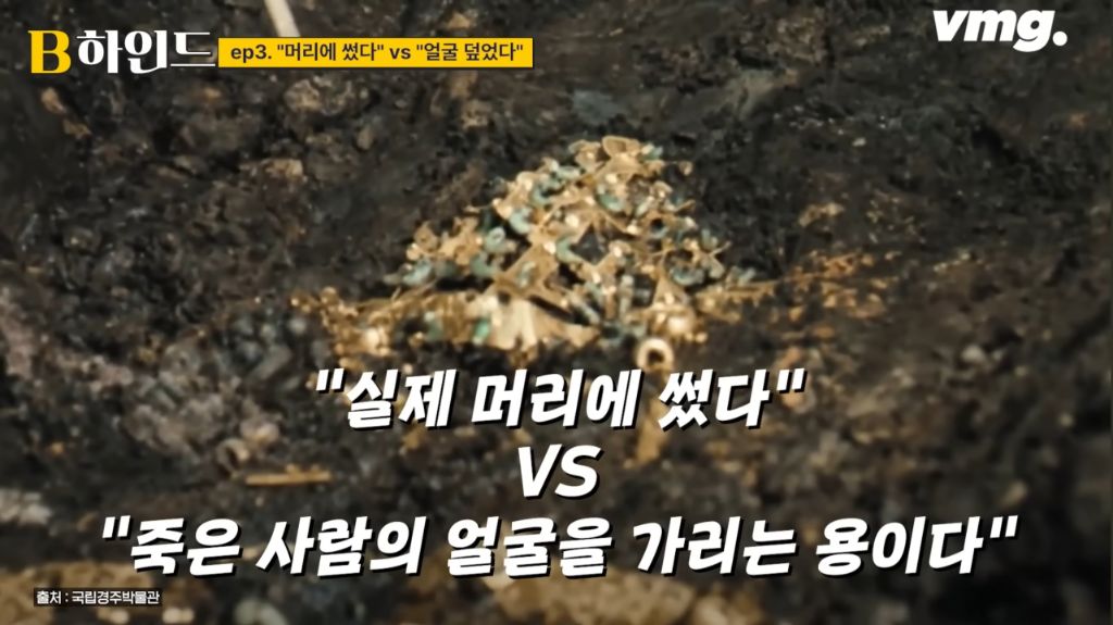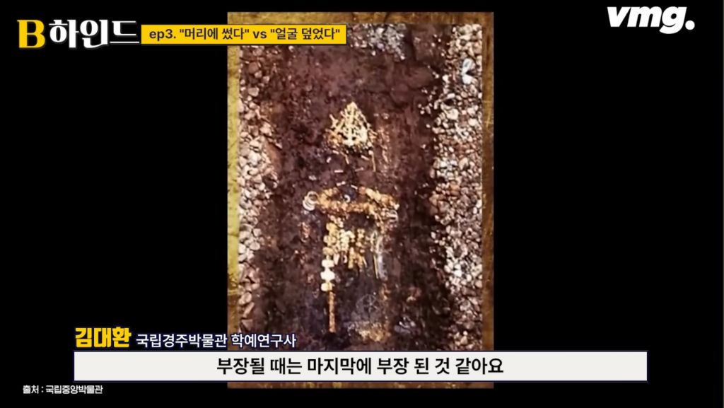 생전에는 머리에 쓰다가 죽으면 부장품으로 얼굴을 덮어줬을 가능성이 높다