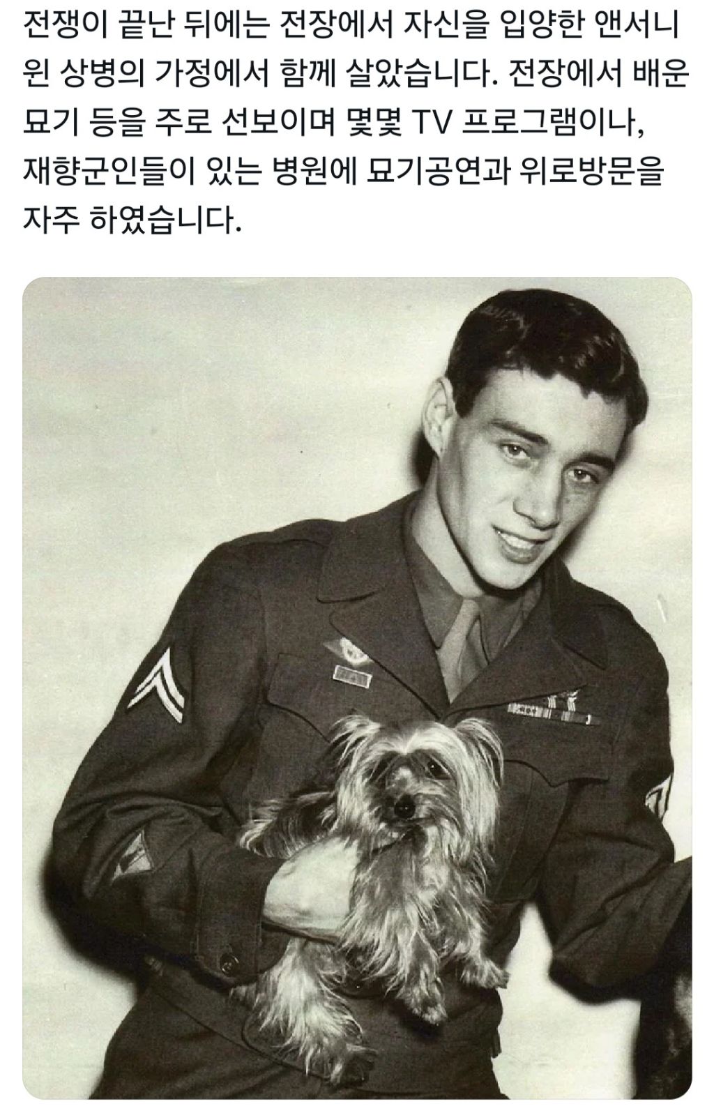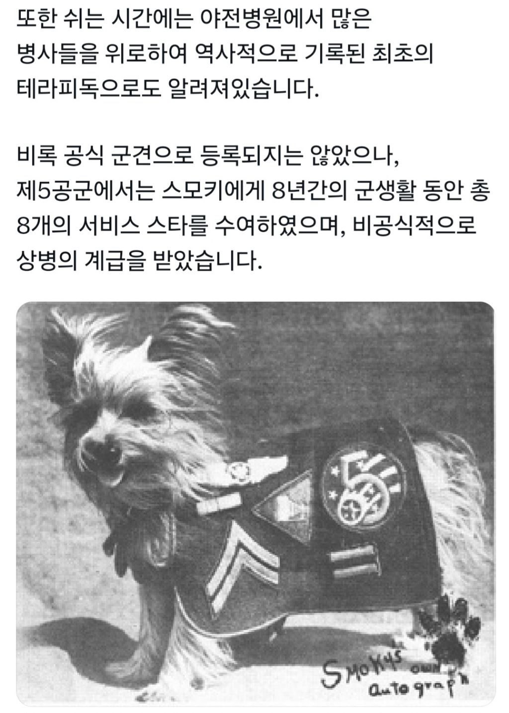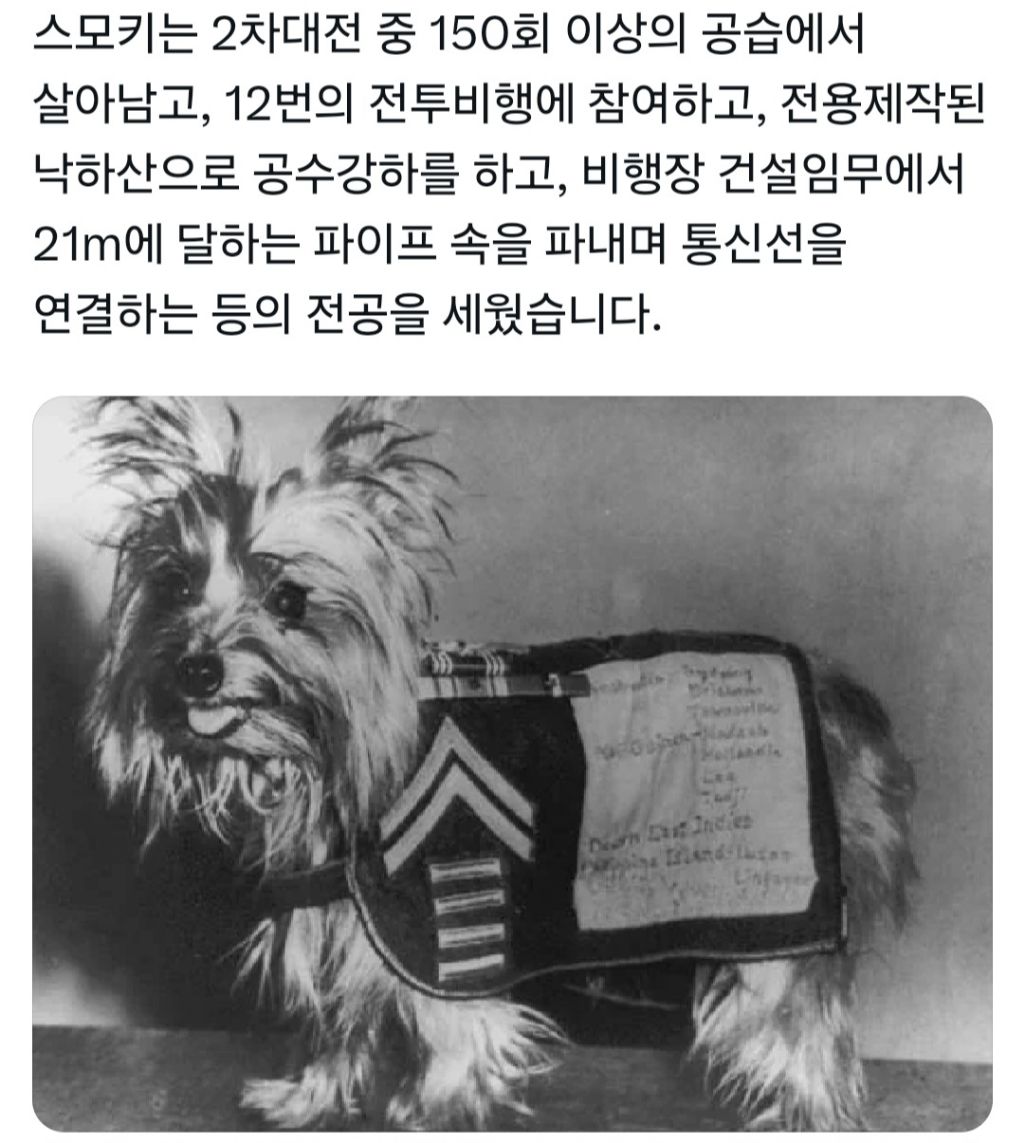 [스크랩] [흥미돋]2차 세계대전 미군 소속으로 참전한 강아지 작성자jxjaw|작성시간25.10.16|조회수11,001 목록 댓글 22 글자크기 작게가 글자크기 크게가 출처: https://x.com/Qudckarhk/status/1972427858455965929?t=BO3rwUB6Mo58LGhIAkJT4Q&s=19 다음검색 스크랩 원문 : *여성시대* 차분한 20대들의 알흠다운 공간 현재 게시글 추가 기능 열기 북마크 공유하기 신고 센터로 신고 댓글 댓글 22 댓글쓰기 답글쓰기 댓글 리스트 작성자풍무그룹 | 작성시간 25.10.16 강쥐는 트라우마 없었을까.. 용맹강쥐 작성자가만히있는데왜건드려 | 작성시간 25.10.16 용맹해 ㅠㅠㅠㅠㅠ 작성자뤿킧 | 작성시간 25.10.16 ㄱㅇㅇ ㅜ 작성자용호초로온나시뱅아 | 작성시간 25.10.16 완전 용맹애기 작성자후아유1 | 작성시간 25.10.16 쪼꼬미가 큰일을 해냈네 ㅠㅠㅠ 댓글 전체보기