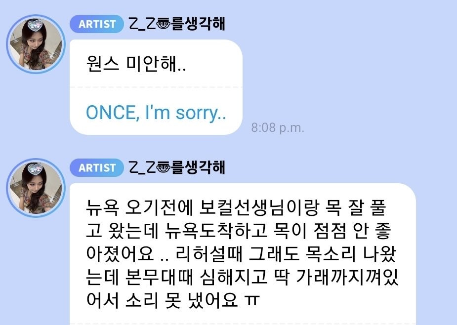 작성자머니머니해도뭐니 작성시간 25.10.17 쯔위 목감기 걸려서 목소리안나왔대 근데 지효 나연 모모 생라이브 잘들리자나