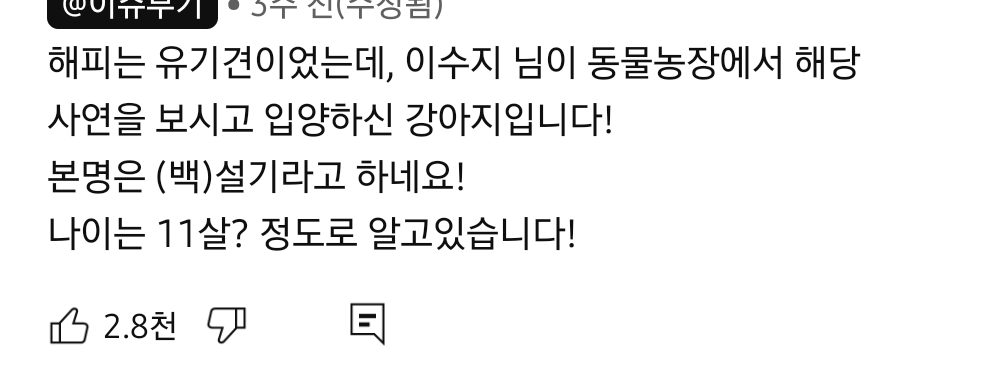 [힐링]랑데뷰 미용실 명품 조연 해피 모음집 작성자우리강아지귀여워|작성시간25.10.17|조회수42,852 목록 댓글 60 글자크기 작게가 글자크기 크게가 출처: https://youtube.com/shorts/p8HLRHN2Uxs?si=-Z99Oi16Sjc_kcWt귀여워... 다음검색 현재 게시글 추가 기능 열기 북마크 공유하기 신고 센터로 신고 댓글 댓글 60 댓글쓰기 답글쓰기 댓글 리스트 작성자초기화기본 | 작성시간 25.10.17 ㄱㅇㅇ 작성자다 잘될거야♡ | 작성시간 25.10.17 해피 진짜 귀여워ㅠㅠㅠㅠㅠㅠㅠㅠㅠ 작성자(히히) | 작성시간 25.10.17 해피 폰브릿지한거 왜케 귀엽냨ㅋㅋ 작성자그러세요 그럼 | 작성시간 25.10.17 해피 진짜 최고야ㅠㅠㅜ 작성자한다면하는상여자 | 작성시간 25.10.17 ㅠㅠㅜㅜㅜㅜㅜ귀야워ㅠㅠㅠ 댓글 전체보기
