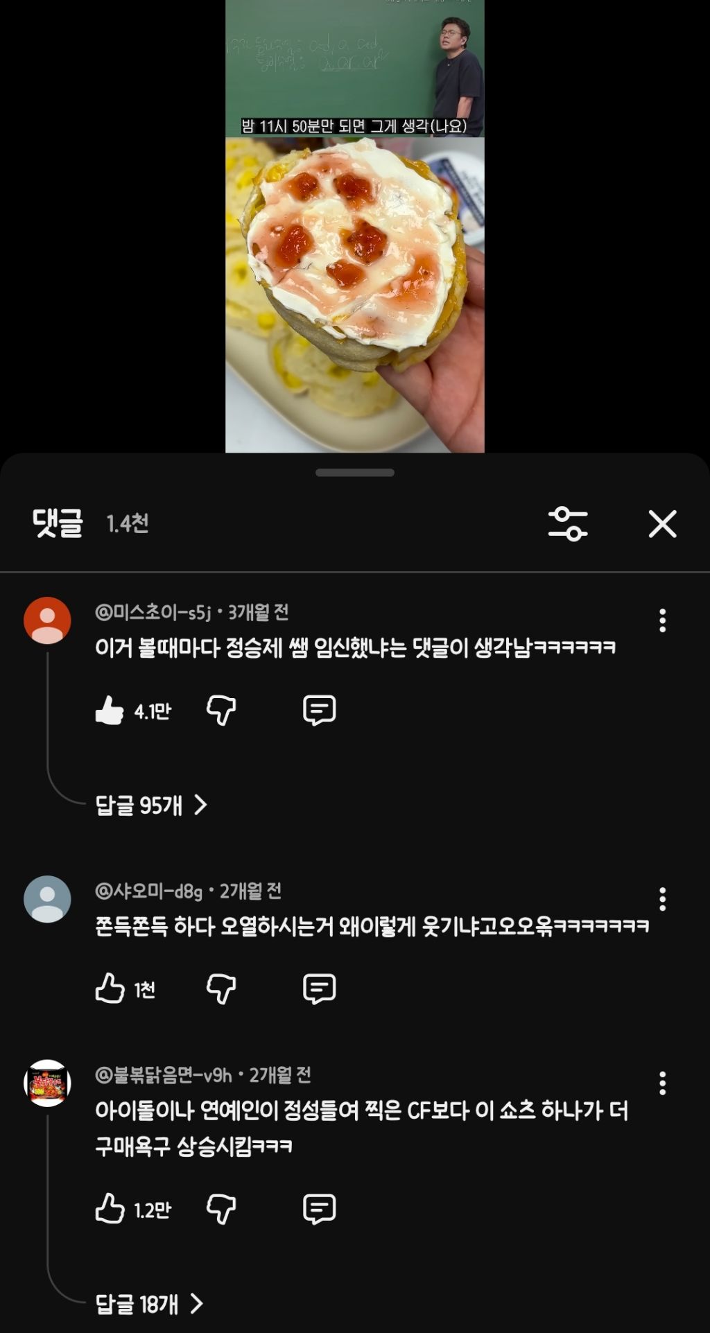 [흥미돋]정승제 생선님의 먹을수록 가슴이 아픈 빵 레시피 작성자하터핑|작성시간25.10.18|조회수92,755 목록 댓글 37 글자크기 작게가 글자크기 크게가 출처: 여성시대 하터핑https://youtube.com/shorts/25SYZ97NAiw?si=LRwW2cZjcT112XvU댓글이 ㅈㄴ 웃기고 빵이 개맛있어 보여서 퍼옴 문제시 어캐든 해볼게 내가 다음검색 현재 게시글 추가 기능 열기 북마크 공유하기 신고 센터로 신고 댓글 댓글 37 댓글쓰기 답글쓰기 댓글 리스트 작성자내눈써어업 | 작성시간 25.10.18 아 육성으로 웃음 ㅋㅋ 작성자빵떡면 | 작성시간 25.10.18 이 양반은 음식 관련해서 말하는거보면 살찔 자격이 있는 양반같음 나같이 다 맛있어서 살찐놈이랑은 달라 작성자분노r아서p해라 | 작성시간 25.10.18 아침에 보고 이거 해먹을라고 지금 뜯어먹는치즈 시켰다 작성자청춘의 꽃 | 작성시간 25.10.19 와 진짜 바로 영업됨...표현 묘사 미쳤음 작성자방콕 | 작성시간 25.10.19 이 정도면 유료광고 받아야됨;; 댓글 전체보기