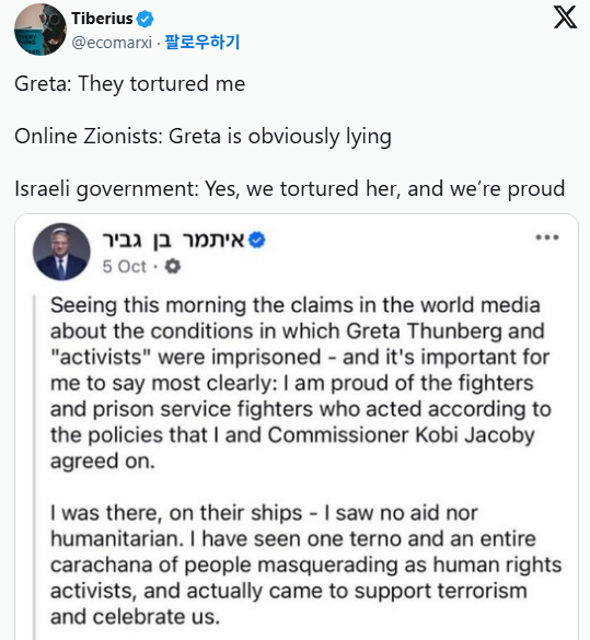 ㅡ 그레타 : 난 이스라엘에서 고문당했다