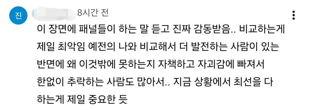 에피소드였는데 과거의 본인과 비교해서 말하는 상황
