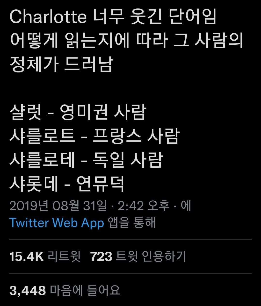 [스크랩] [흥미돋]Charlotte 너무 웃긴 단어임 어떻게 읽는지에 따라 그 사람의 정체가 드러남.twt