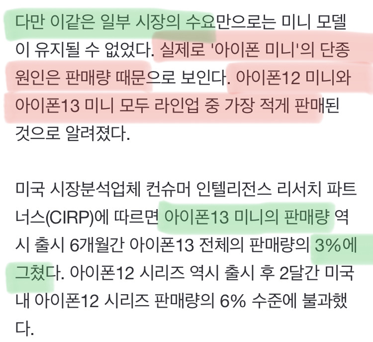 전세계로 보면 미니 판매량은 3-6%밖에 안되서
