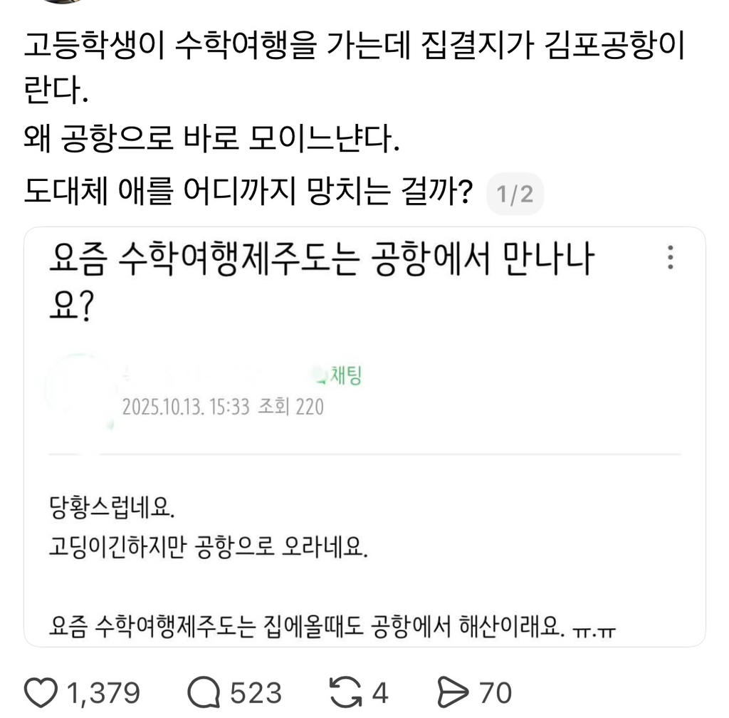 근데 인원 파악 하고 잘 통솔할려면 공항보다 학교출발이 나은거같아 -