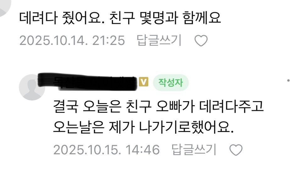 작성시간 25.10.23 시골살면 너무 힘들어서 항상 학교에 일찍 모여서 다같이 갔어