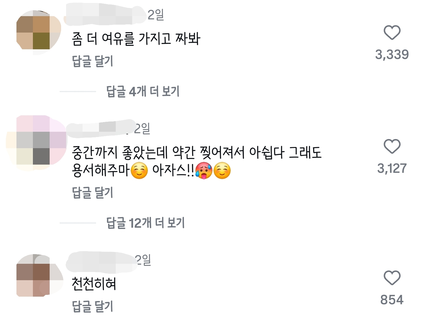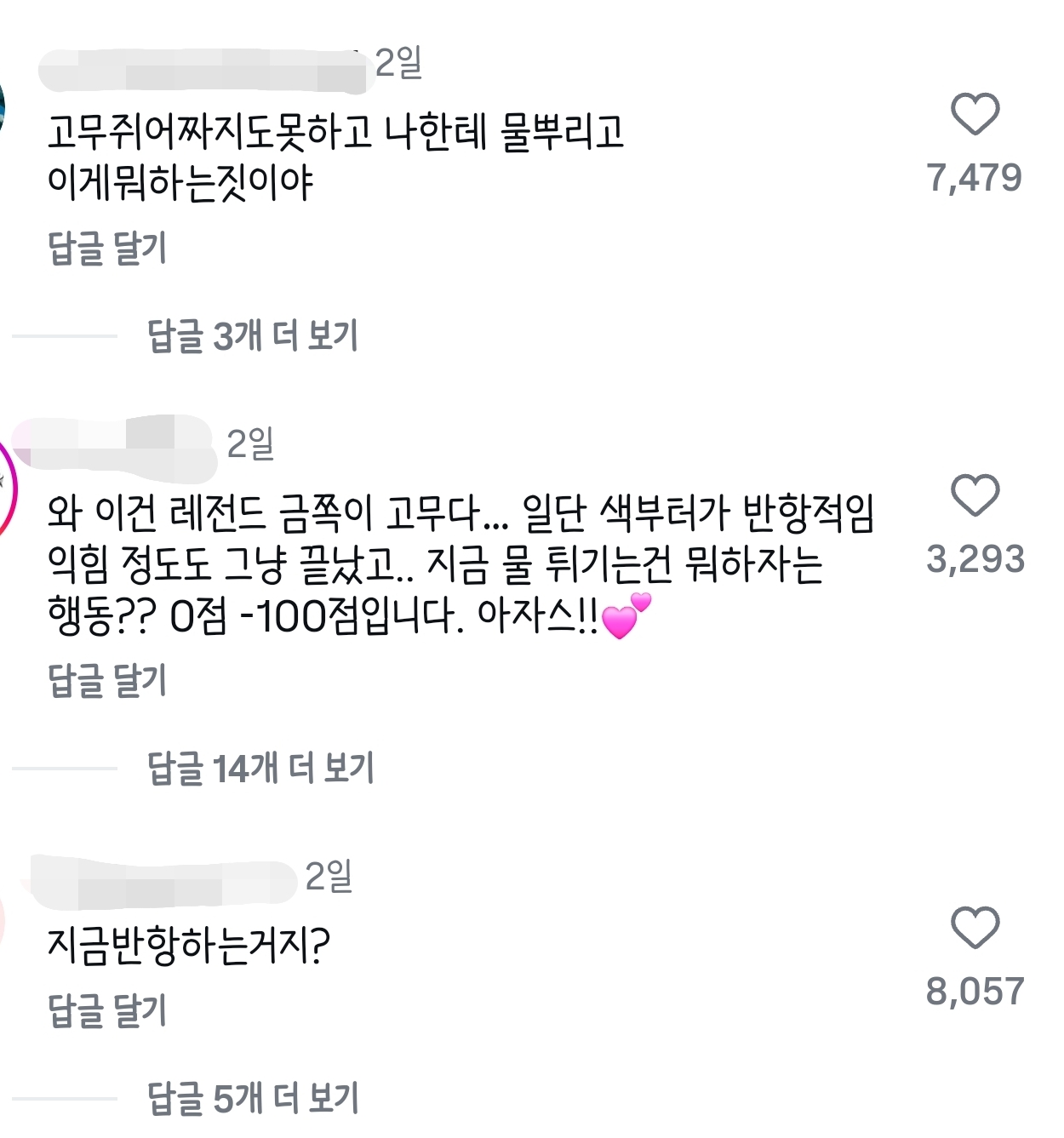 [스크랩] [배꼽의행방]한국인들 고무 짜는 영상에 진심인거 개웃김 작성자셉일렙븐|작성시간25.10.22|조회수46,671 목록 댓글 83 글자크기 작게가 글자크기 크게가 출처: 여성시대 엿시씌 알고리즘에 떠서 봤는데한국인들 저 계정에 다모여서 평가하고있음ㅋㅋㅋㅋ다른 계정에서도 이러고있음ㅋㅋㅋ판다한테도 훈수ㅠㅋㅋㅋㅋㅋ 다음검색 스크랩 원문 : *여성시대* 차분한 20대들의 알흠다운 공간 현재 게시글 추가 기능 열기 북마크 공유하기 신고 센터로 신고 댓글 댓글 83 댓글쓰기 답글쓰기 댓글 리스트 작성자쌜국수러버나야나 | 작성시간 25.10.22 나한테 물까지 뿌리고 ㅋㅋㅋㅋㅋ 작성자Amy Pond | 작성시간 25.10.22 ㅋㅋㅋㅋ나한테 물까지뿌리곸ㅋㅋ 작성자닥스 | 작성시간 25.10.23 왜이랰ㅋㅋㅋㅋㅋㅋㅋㅋㅋㅋㅋㅋㅋㅋ 작성자미니체리콕 | 작성시간 25.10.23 쫀득~ 작성자토토로로 | 작성시간 25.10.24 개웃기넼ㅋㅋㅋㅋㅋㅋㅋㅋㅋㅋㅋㅋ 댓글 전체보기