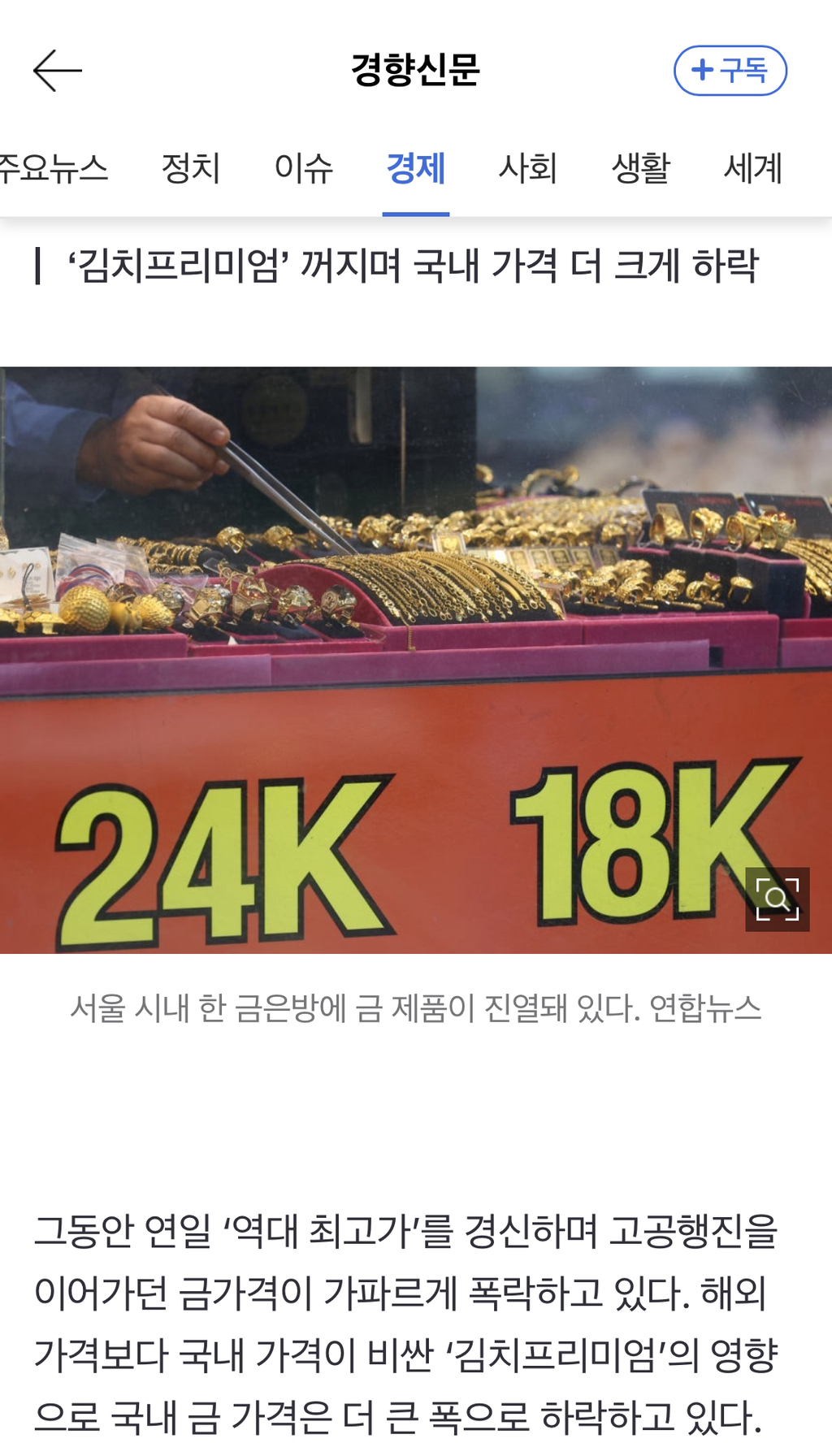 [여시뉴스데스크]연일 최고가 경신하던 금값, 3거래일 만에 12.7% 폭락···투자자들 ‘비명’ 작성자휘디디리|작성시간25.10.22|조회수21,856 목록 댓글 65 글자크기 작게가 글자크기 크게가 출처: https://n.news.naver.com/article/032/0003403617?sid=101연일 최고가 경신하던 금값, 3거래일 만에 12.7% 폭락···투자자들 ‘비명’그동안 연일 ‘역대 최고가’를 경신하며 고공행진을 이어가던 금가격이 가파르게 폭락하고 있다. 해외 가격보다 국내 가격이 비싼 ‘김치프리미엄’의 영향으로 국내 금 가격은 더 큰 폭으로 n.news.naver.com 다음검색 현재 게시글 추가 기능 열기 북마크 공유하기 신고 센터로 신고 댓글 댓글 65 댓글쓰기 답글쓰기 댓글 리스트 삭제된 댓글입니다. 답댓글 작성자몽구리몽 | 작성시간 25.10.22 지나가다 궁금해서 1도 몰라서 물어보는건데 ㅜㅜ 왜 그런거야??? 작성자어쩌란말이냐아 | 작성시간 25.10.22 금은 존버할 수 있어~~ 작성자202호 | 작성시간 25.10.22 어제부터 한개씩 사는 중.. 작성자단호박타르트 | 작성시간 25.10.22 떨어지길 기다리다가 그냥 며칠전에 샀더니만^^ 댓글 전체보기