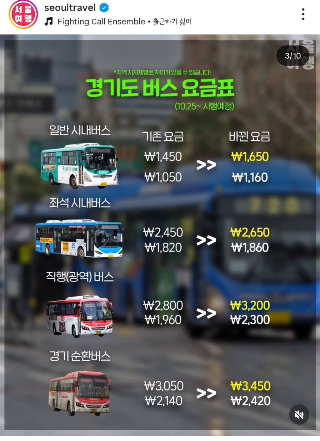 경기도 버스 10/25 부터 버스비 인상이래ㅠㅠ