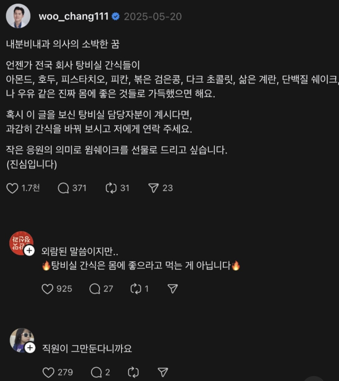 [스크랩] [배꼽의행방]친구들에게 과자나 케이크를 권하지 마세요. 작성자루카걸어다니노|작성시간25.10.22|조회수77,020 목록 댓글 58 글자크기 작게가 글자크기 크게가 출처: 여성시대 루카걸어다니노(닥터프렌즈 우창윤 의사선생님 스레드 글들임)아니 근데 이런 글들 보니까 아무 생각 없다가 괜히 더 먹고싶어짐 다음검색 스크랩 원문 : *여성시대* 차분한 20대들의 알흠다운 공간 현재 게시글 추가 기능 열기 북마크 공유하기 신고 센터로 신고 댓글 댓글 58 댓글쓰기 답글쓰기 댓글 리스트 작성자오마위아래 | 작성시간 25.10.22 이러고계실거같음 이미지 확대 작성자파주출판단지 | 작성시간 25.10.22 다 자란 달걀 ㅅㅂㅋㅋㅋㅋㅋㅋㅋㅋㅋ 작성자초코초코볼 | 작성시간 25.10.22 다 자란 계란ㅋㅋㅋㅋㅋㅋㅋㅋㅋㅋㅋㅋㅋ 작성자이용민아닌가요 | 작성시간 25.10.23 저 쌤 본인도 안지키심 친구의사피셜 꼴값떠는거 개열받아서 라면끓여먹었다고 했음ㅋㅌ 작성자롹슷타 | 작성시간 25.10.23 다 자란 달걀ㅋㅋㅋㅋㅋㅋㅋㅋㅋㅋㅋㅋ 댓글 전체보기