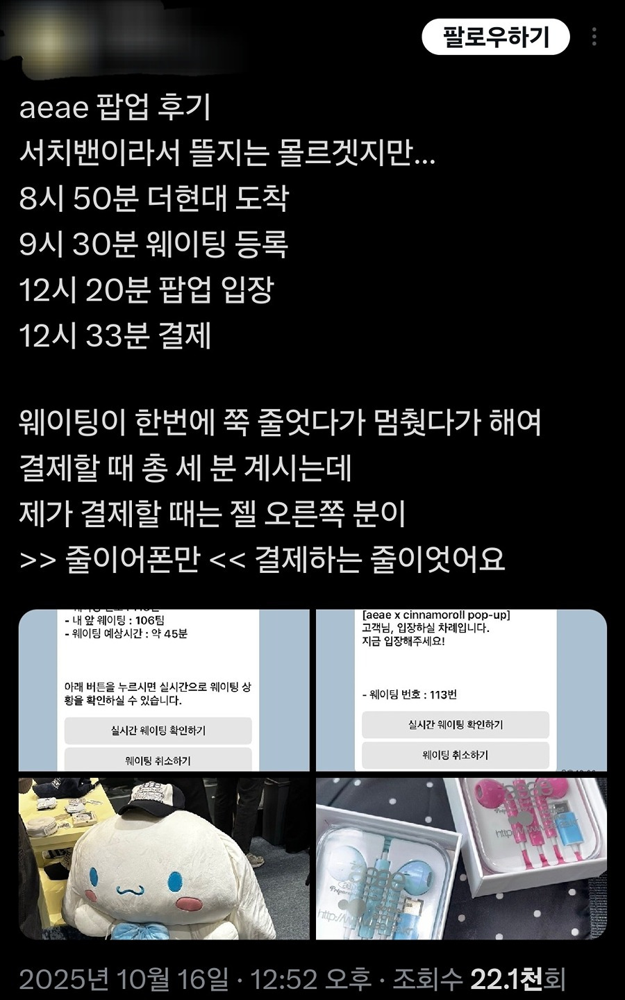 작성자한대맞자 작성시간 25.11.17 온라인 발매 놓쳐서 슬펐는데 음질이 구리다니 다행이네.. 난 공식 이어폰이랑 음향은 똑같은 줄