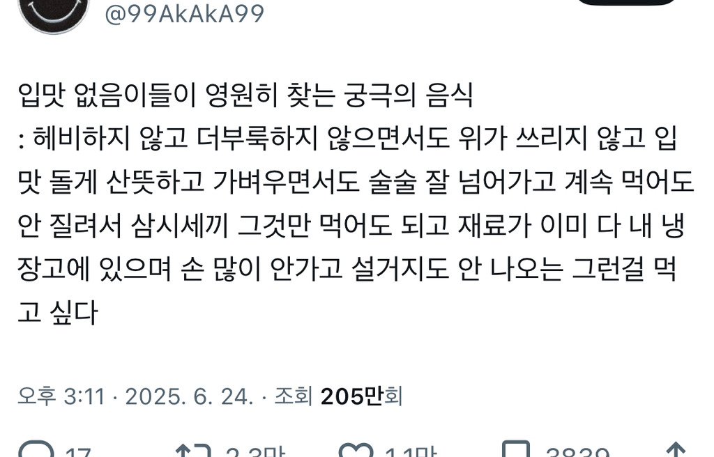 [스크랩] [흥미돋]입맛 없음이들이 영원히 찾는 궁극의 음식 작성자응칠|작성시간25.10.22|조회수62,579 목록 댓글 120 글자크기 작게가 글자크기 크게가 출처: https://www.dmitory.com/issue/370960813 다음검색 스크랩 원문 : *여성시대* 차분한 20대들의 알흠다운 공간 현재 게시글 추가 기능 열기 북마크 공유하기 신고 센터로 신고 댓글 댓글 120 댓글쓰기 답글쓰기 댓글 리스트 작성자쉬를갈기지마세요 | 작성시간 25.10.23 일단 입맛없다는게 부러워 작성자지옥의 후부키 | 작성시간 25.10.23 제발 글 지우지 말아줘.. 댓글에 메뉴들 미쳤음.. 작성자ktx청룡 | 작성시간 25.10.23 와 댓글 천국이네 작성자NAKEDBIBI | 작성시간 25.10.23 간장계란밥이 최고.. 계란찜으로 해서 작성자고하는고양이하이란뜻임 | 작성시간 25.11.01 물 말아서 오이지무침하고 먹기 댓글 전체보기