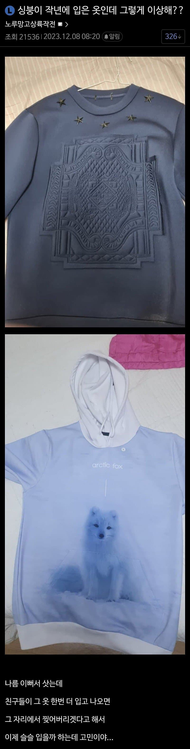 [흥미돋]친구들이 옷 찢어버린다는데 그렇게 이상해..? 작성자폼폼부린|작성시간25.10.22|조회수67,897 목록 댓글 98 글자크기 작게가 글자크기 크게가 출처: 여성시대 폼폼부린ㅁㅂ 다음검색 현재 게시글 추가 기능 열기 북마크 공유하기 신고 센터로 신고 댓글 댓글 98 댓글쓰기 답글쓰기 댓글 리스트 작성자와리가리하네 | 작성시간 25.10.23 ㄹㅇ 찐따한남 작성자xeesoxeee | 작성시간 25.10.23 친구 말 들어 진짜 작성자래비아 | 작성시간 25.10.23 요즘에 저런옷파는곳이 있는게 신기 구제시장가서 샀나 작성자크림빵과냉커피 | 작성시간 25.10.23 참친구 작성자매일제로콜라 | 작성시간 25.10.24 1번은 별만 살살때고 입고.. 2번은 그냥 괜찮지않나.. 댓글 전체보기