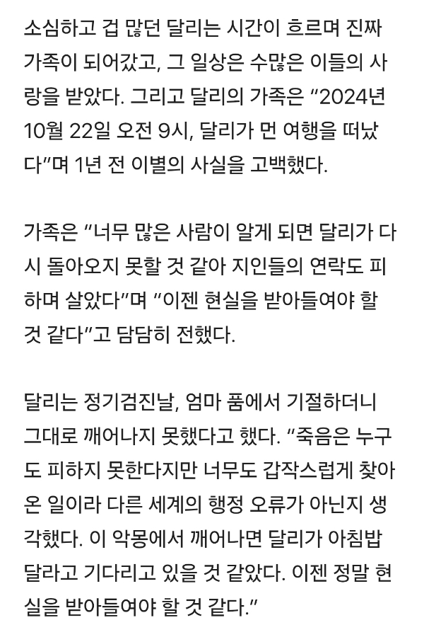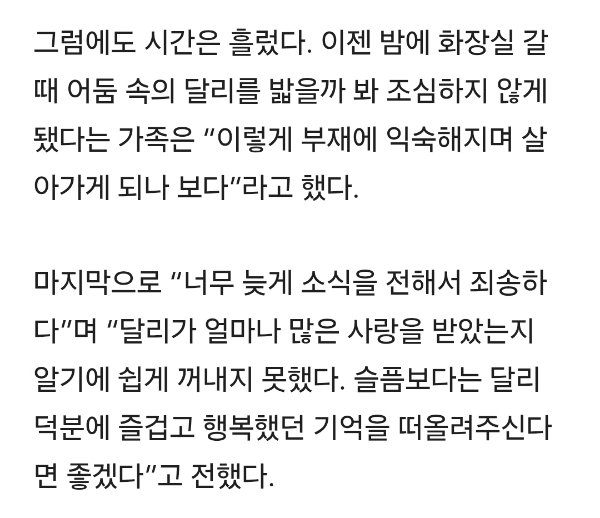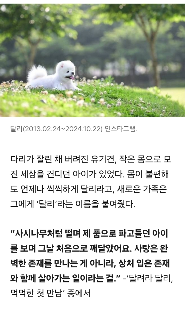 작성자나는야 뚜벅초 작성시간 25.11.20 이제 알았어 달리야 다음 생에는 더 건강하게 태어나서 실컷 뛰어놀아