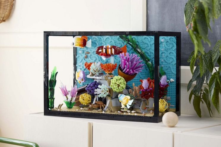 이번 신제품은 성인층을 중심으로 확산하고 있는 '집 꾸미기' 트렌드에 맞춰 물 없이도 감상할 수 있는 관상용 수조를 콘셉트로 선보인다. 총 4154개의 브릭으로 열대어, 산호초, 조개 등 각양각색의 해양 생물들로 가득한 대형 수조를 구현했다.