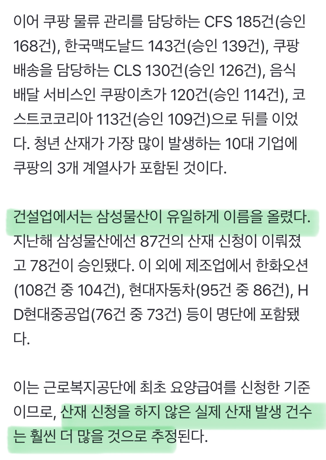 작성자말머리성운좋아 작성시간 25.10.23 그나마 대기업이라 산재 해줘서 잡힌거지......