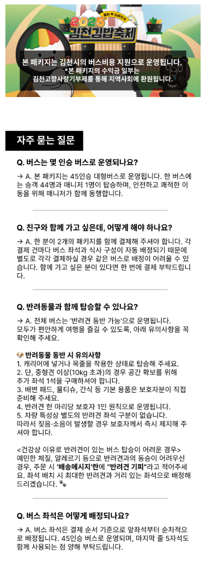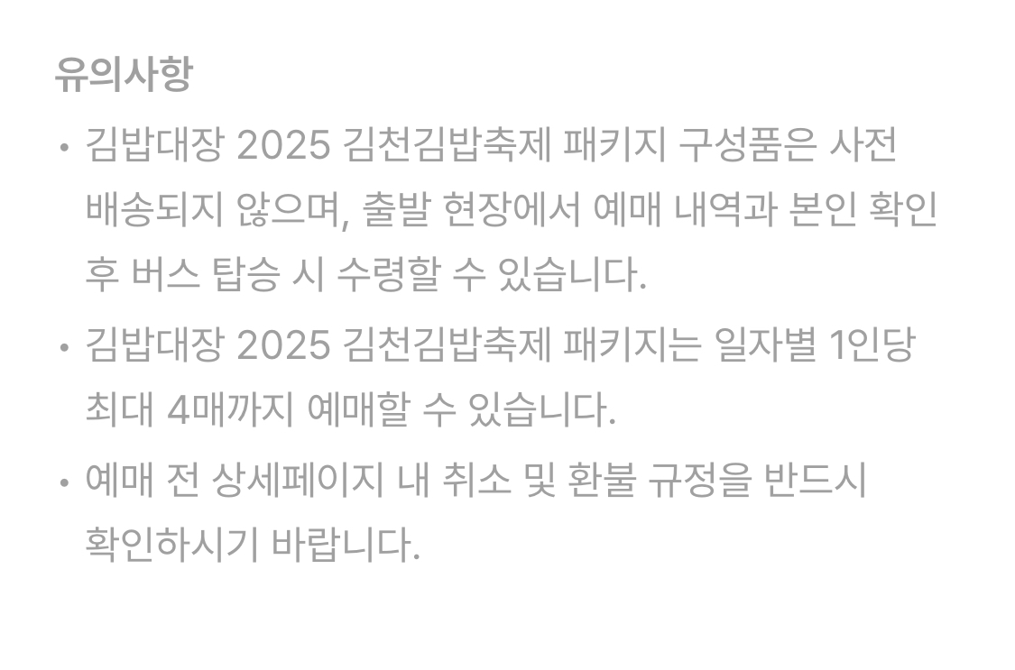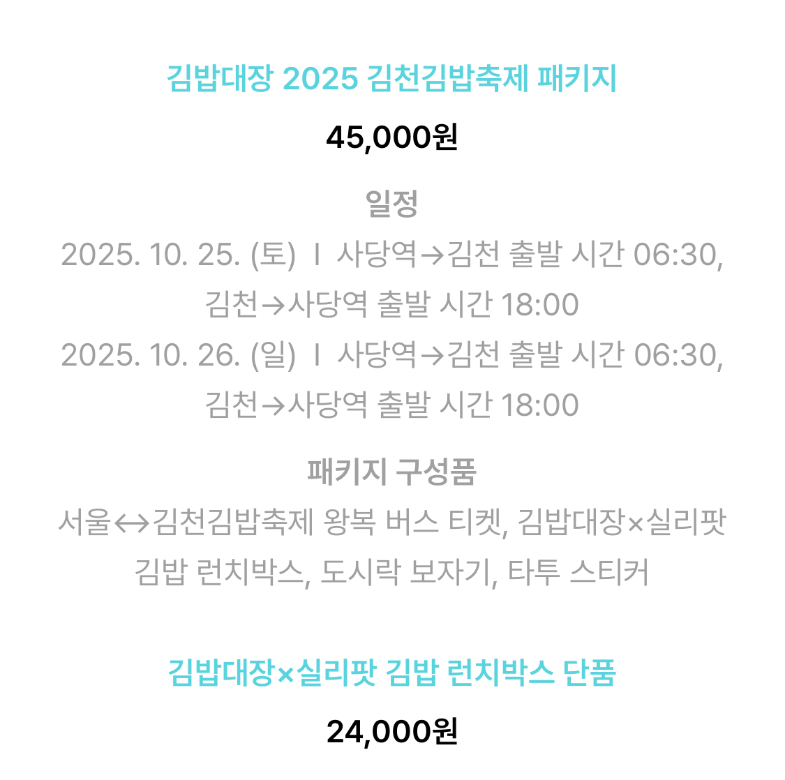 [흥미돋]29CM X 김천김밥축제 패키지 작성자바나나스플릿구슬|작성시간25.10.23|조회수62,505 목록 댓글 201 글자크기 작게가 글자크기 크게가 출처: 여성시대 바나나스플릿구슬 https://www.29cm.co.kr/products/3558608김밥대장 2025 김천김밥축제 패키지 - 감도 깊은 취향 셀렉트샵 29CM김밥집(GIMBAPZIP) 김밥대장 2025 김천김밥축제 패키지www.29cm.co.kr 다음검색 현재 게시글 추가 기능 열기 북마크 공유하기 신고 센터로 신고 댓글 댓글 201 댓글쓰기 답글쓰기 댓글 리스트 작성자허니쌀과자 | 작성시간 25.10.24 패키지는 끝났네ㅠ엉엉 작성자즐거운 | 작성시간 25.10.24 맨날 김천 축제 어쩌고만 보다 막상 낼이었구나ㅠㅠ 아쉽긴하다 작성자파란 나라를 보았니 | 작성시간 25.10.25 이걸로 다녀온 여시들 후기가 궁금해 답댓글 작성자Third-Bigwave | 작성시간 25.10.25 오늘 다녀왔는데 너무 좋았어 작성자교촌오리 | 작성시간 25.10.26 이런게 있었구나 왜 나 안알려줬어ㅠㅠㅠㅠㅠ 댓글 전체보기