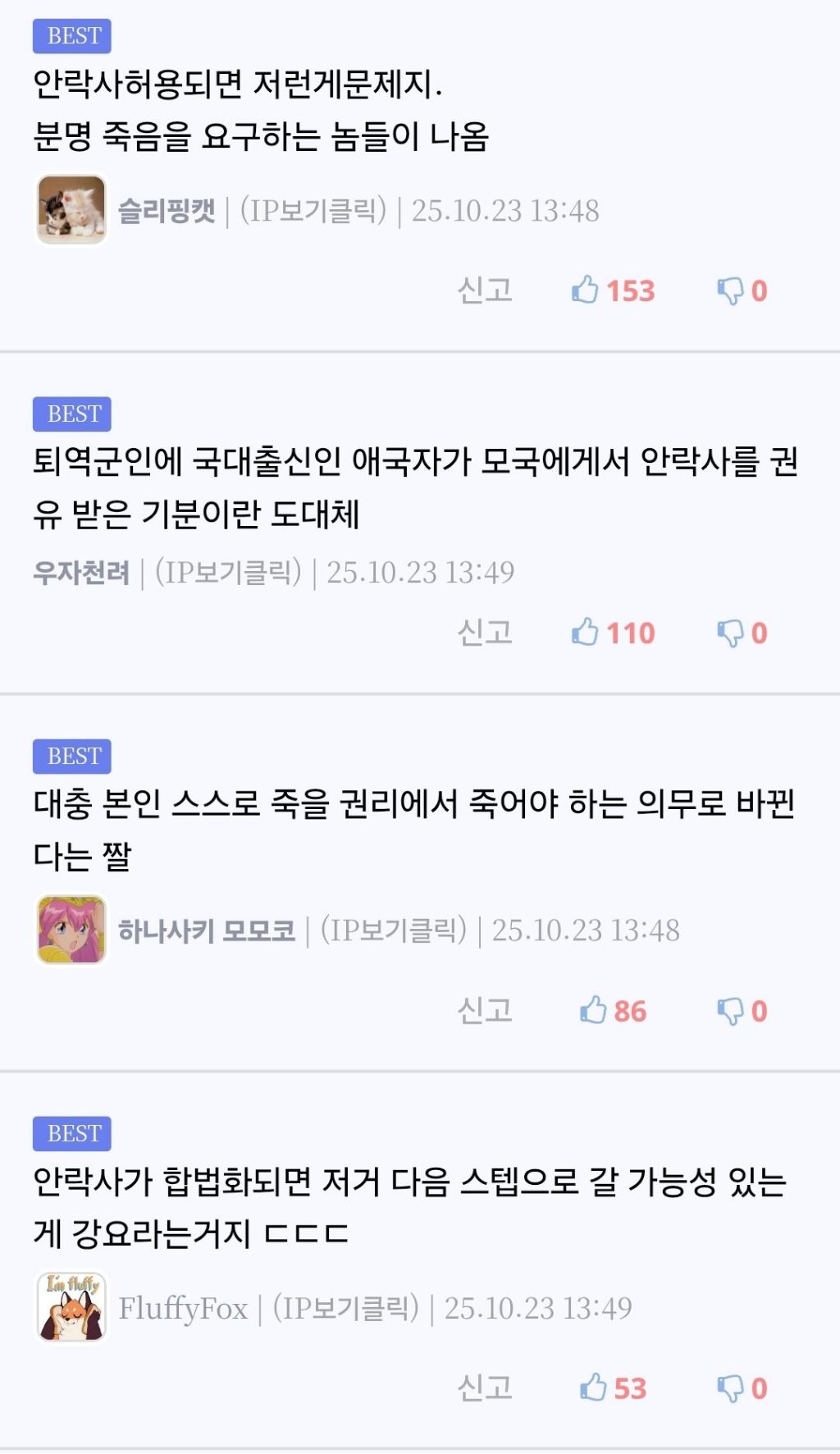 답댓글 작성자kevin de bruyne 작성시간 25.10.24 나도 이래서 우리나라에 안락사 합법으로 들여오는거 신중해야 한다고 생각함.. 우리나라는 더하면 더했지.. ㅋㅋ