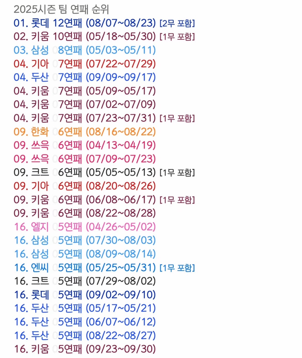 [흥미돋][KBO] 2025시즌 야구 팀 연승 / 연패 순위 작성자죄송합니다겠냐고|작성시간25.10.23|조회수12,443 목록 댓글 41 글자크기 작게가 글자크기 크게가 출처: 여성시대 죄송합니다겠냐고팀 연승 순위팀 연패 순위 다음검색 현재 게시글 추가 기능 열기 북마크 공유하기 신고 센터로 신고 댓글 댓글 41 댓글쓰기 답글쓰기 댓글 리스트 작성자눈펑펑 | 작성시간 25.10.24 기아야... 작성자ROSALIA | 작성시간 25.10.24 3위 어떻게 했냐ㅋㅋ 작성자복보 | 작성시간 25.10.24 해체해라 그냥 작성자꽃으로피어나 | 작성시간 25.10.24 우리 팀 저러고도 3위 한 게 신기하다 진짜 작성자아핫ㅎ | 작성시간 25.10.24 기아 저는 모르는 팀이에요 댓글 전체보기