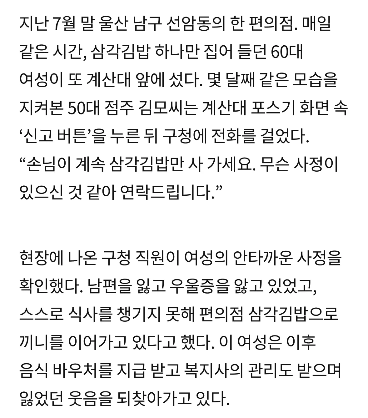 작성자냥하리 작성시간 25.10.24 눈썰미 대박..나였음 간단하게 먹기엔 삼각김밥이지 되게 좋아하시나보다 하고 넘겼을거같은데