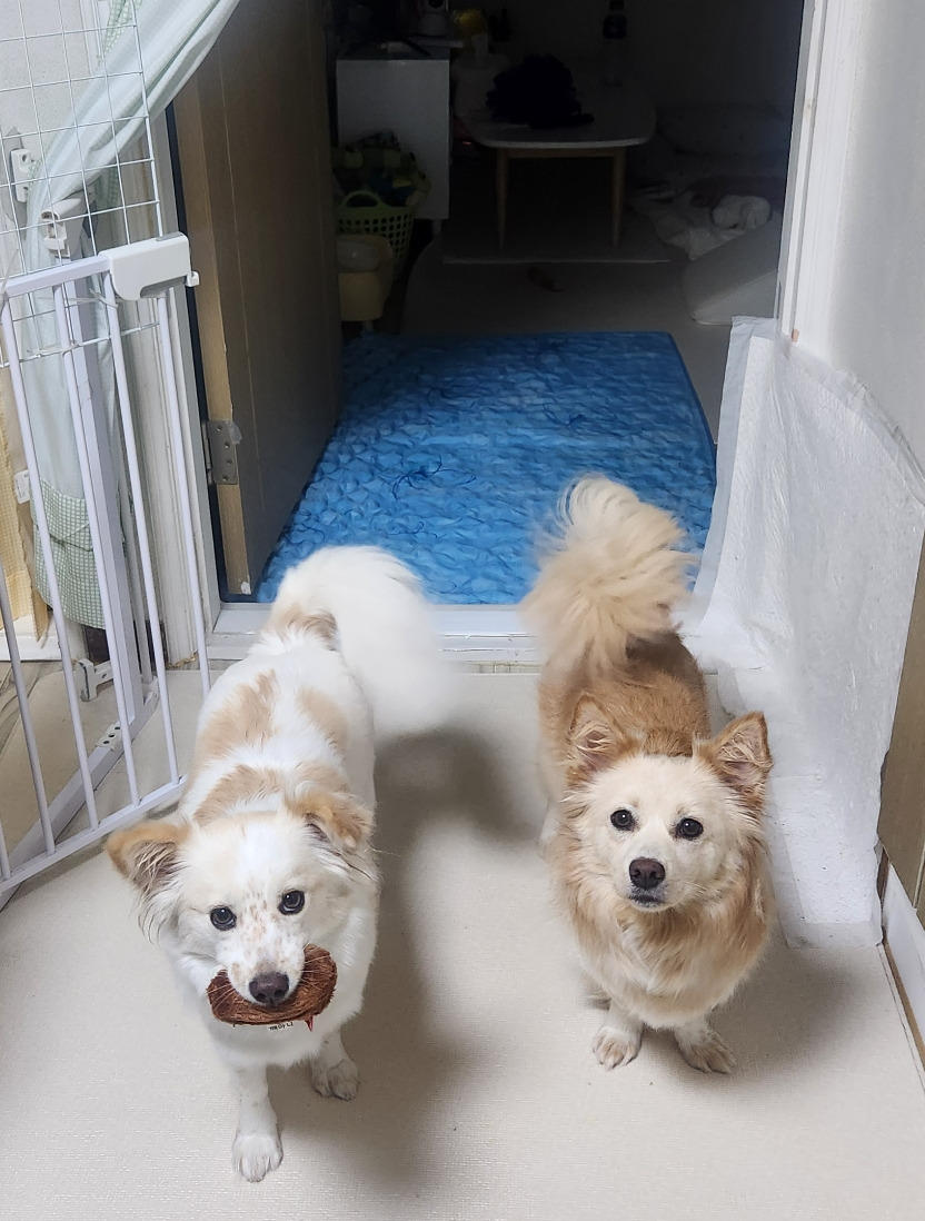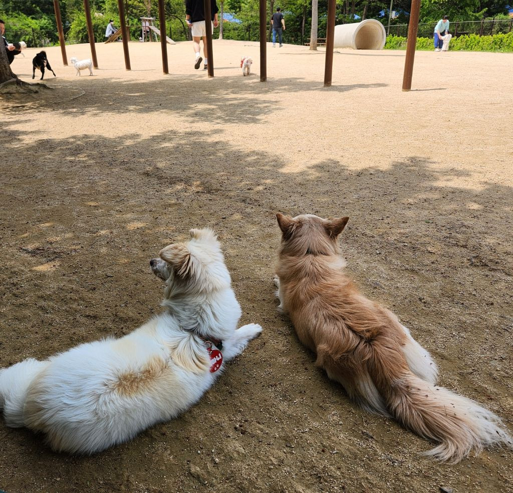 산책다녀온 직후라 헉헉거리는 둘