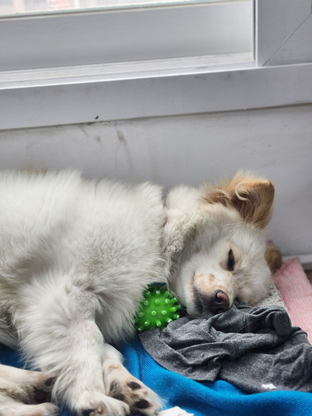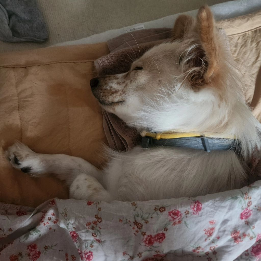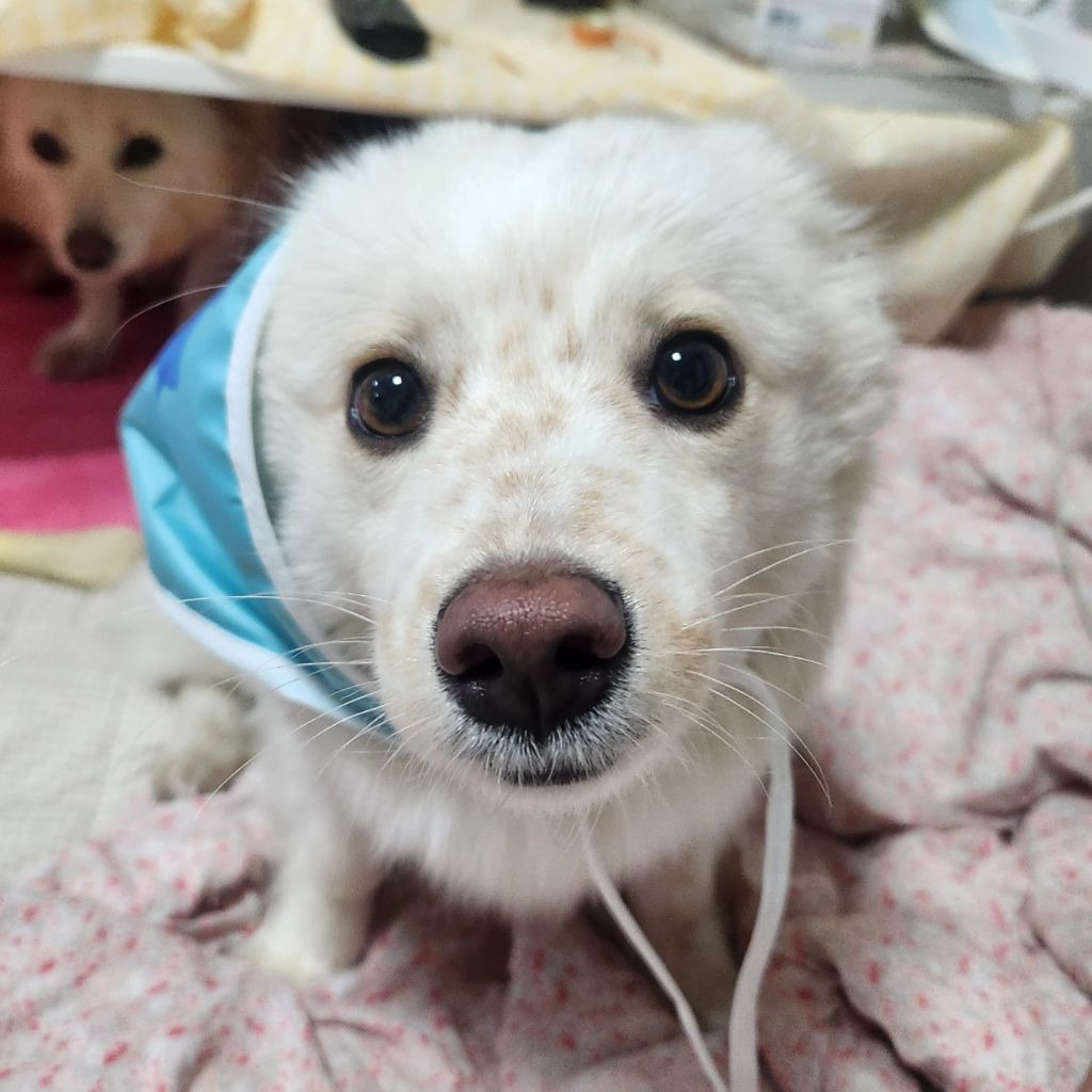 구조한 날 사진...보호소에서 인계한 병원(진짜 여기도 개노답)에서 애가 사납다며 마취해가지고 몽롱한 상태 ㅜㅜ