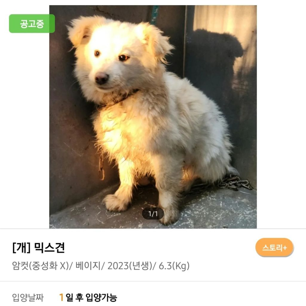 시골 동네 방치견 아이가 새끼를 낳았는데 그 중 한마리로 추정,,