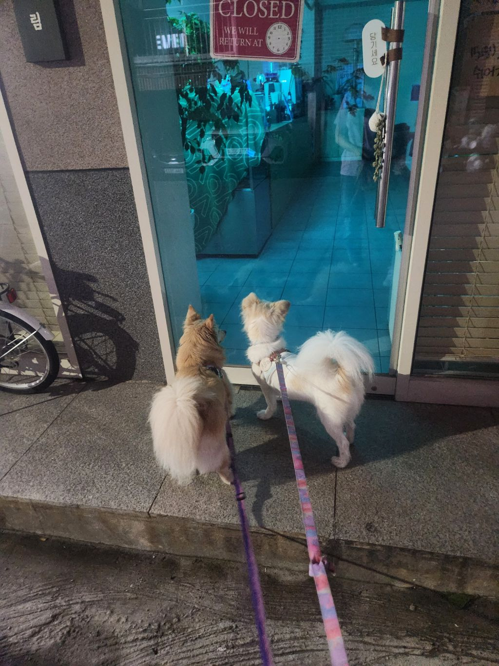 자주가는 카페인데 산책할 때 여기만 지나가면 둘다 문열라고 시위함..아무도 없다고오...