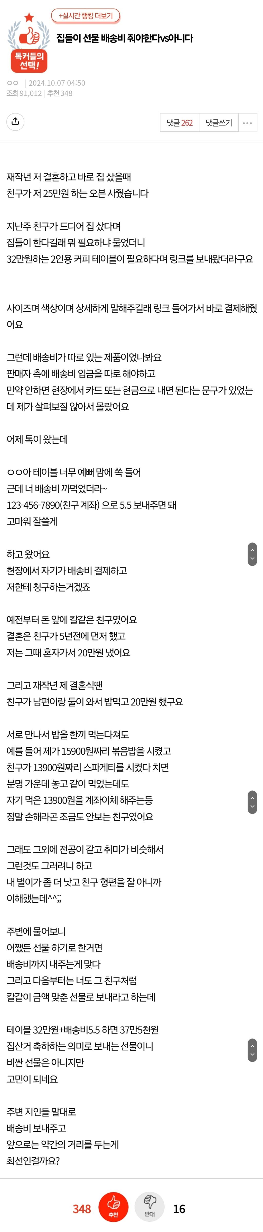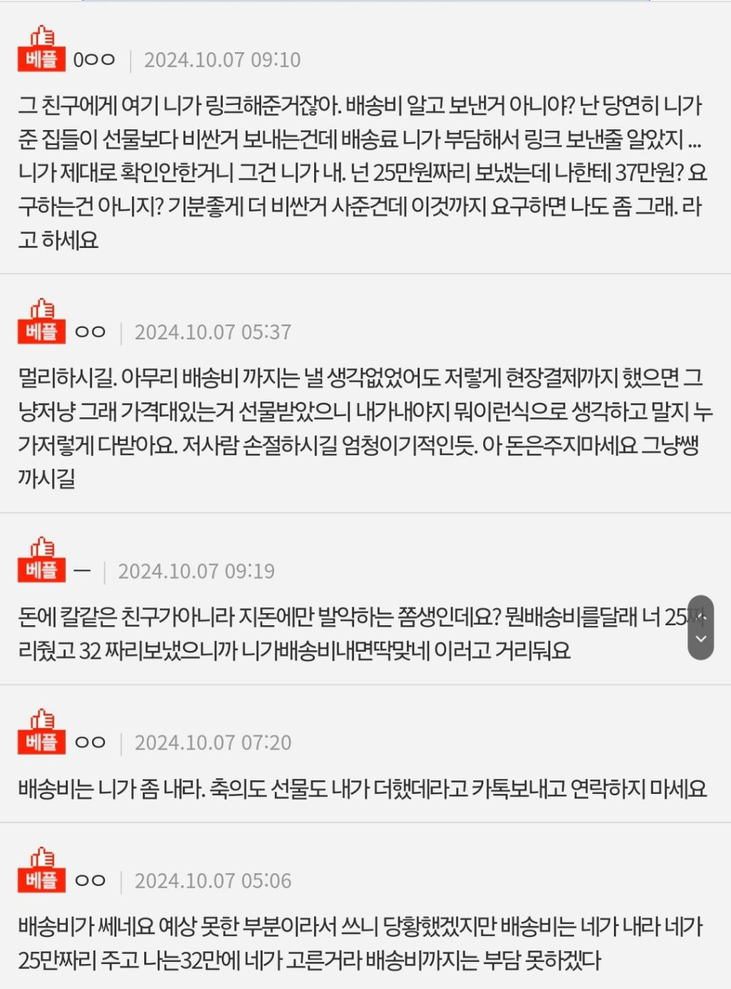 작성자보통보통 작성시간 25.10.24 지는 25만원짜리 사주고 왜 32 바라면서 배송비까지 달래 지돈만 칼같네