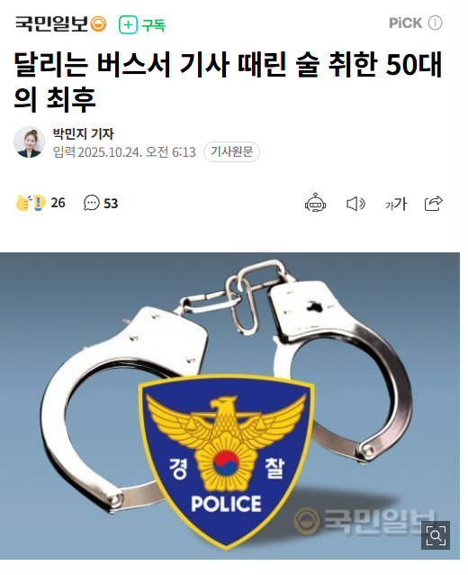 작성자아기 락스타 작성시간 25.10.24 이거 뉴스 영상으로 봤는데 휴대폰 쥔 손으로 20차례 이상 내려치더라; 기사님 끝까지 운전대 안 놓으시려고 노력하심 ㅠ 그 버스에 어린 학생들밖에 안 타고 있어서 얘네가 말렸는데도 뿌리치고 계속 때려 완전 살인미수 아니냐고 ㅡㅡ