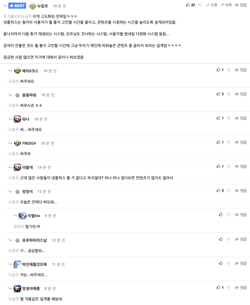넷플릭스의 추천기능을 개인적으로는 만족하고 있었는데, 아닌 분들도 많이 계시네요.