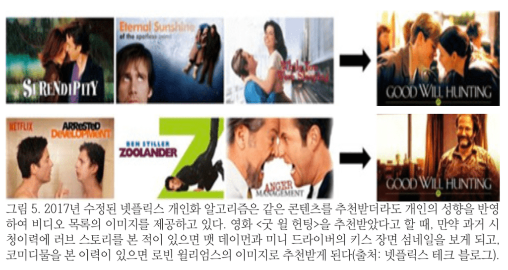 넷플릭스: 똑같은 콘텐츠도 너가 뭘 좋아하냐에 따라 다른 썸네일로 보여줄게.