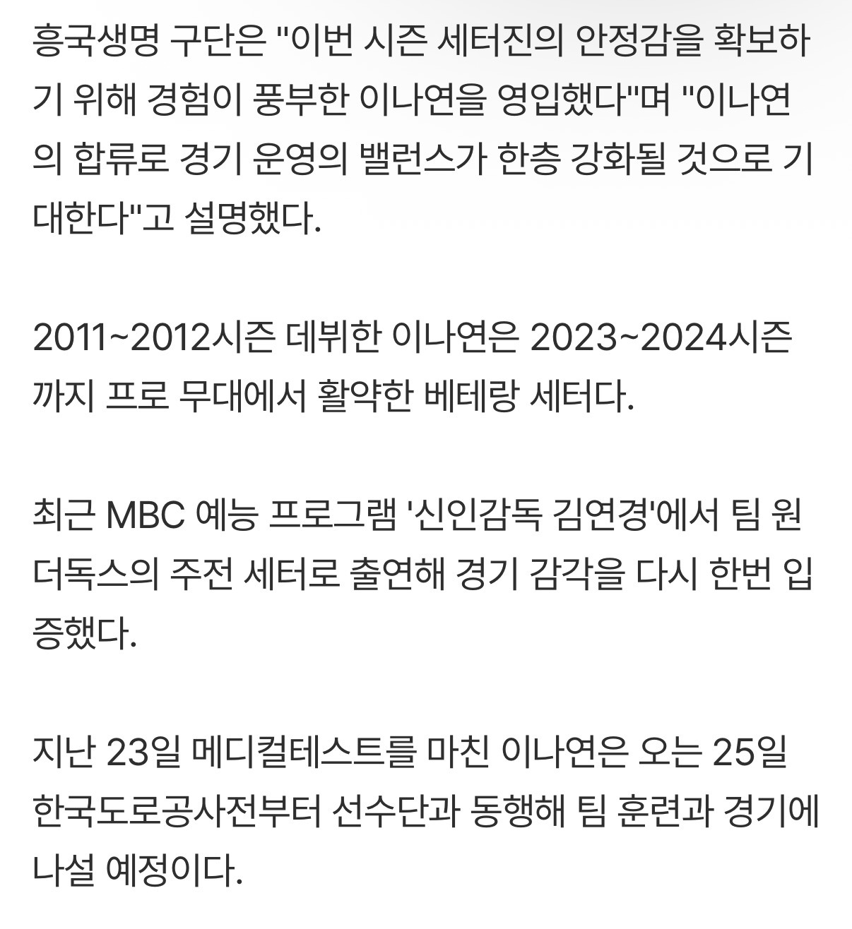 [여시뉴스데스크]여자배구 흥국생명, '신인감독 김연경' 세터 이나연 영입 작성자슈퍼펭귄시리얼|작성시간25.10.24|조회수73,447 목록 댓글 159 글자크기 작게가 글자크기 크게가 출처: https://m.sports.naver.com/volleyball/article/003/0013556569여자배구 흥국생명, '신인감독 김연경' 세터 이나연 영입여기를 눌러 링크를 확인하세요m.sports.naver.com 다음검색 현재 게시글 추가 기능 열기 북마크 공유하기 신고 센터로 신고 댓글 댓글 159 댓글쓰기 답글쓰기 댓글 리스트 작성자선크림팍팍발라라 | 작성시간 25.10.25 오 대박 작성자자낳괴나 물조심 | 작성시간 25.10.25 크 너무 축하 작성자흰 고래의 흼에 대하여 | 작성시간 25.10.26 헐 너무 축하해요 진짜 잘됐다 작성자21대이재명대통령 | 작성시간 25.10.26 와!!!! 나이스 잘됐다 작성자2026행운을빌어줘 | 작성시간 26.01.07 나연 화이링🤍 댓글 전체보기