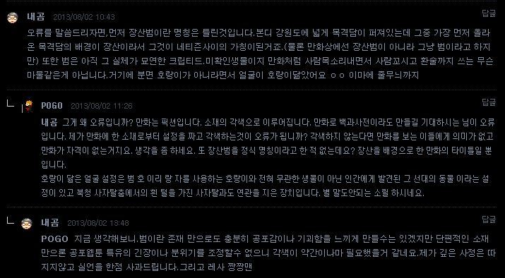 3. 2013 전설의고향 웹툰 장산범 만화를 그렸었음