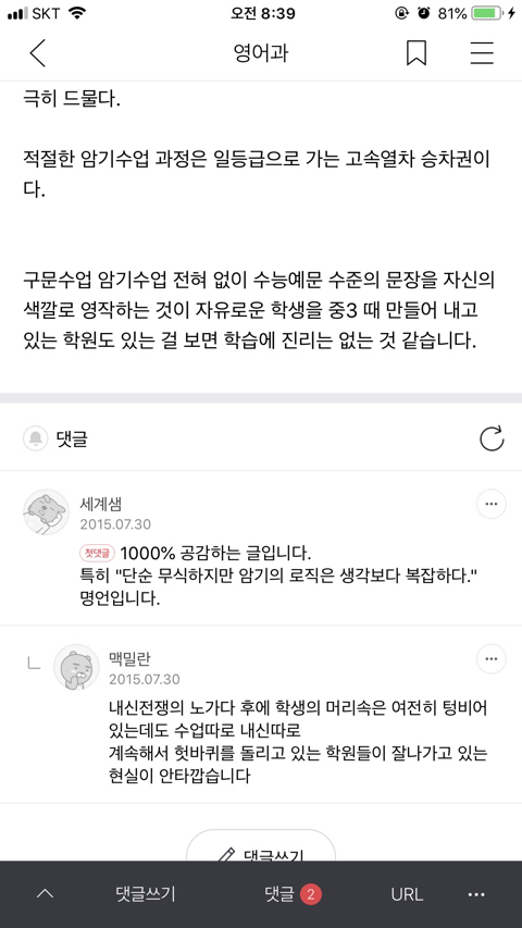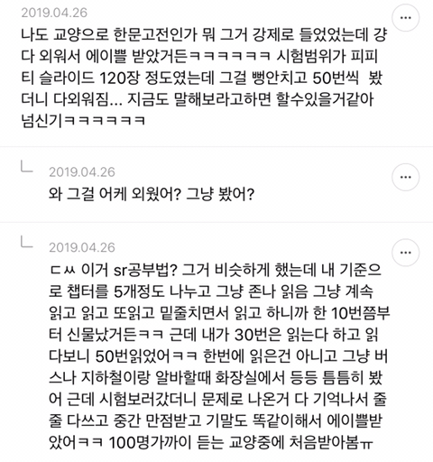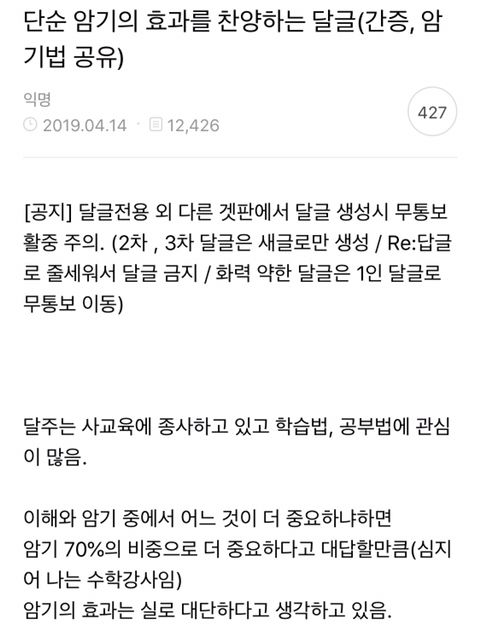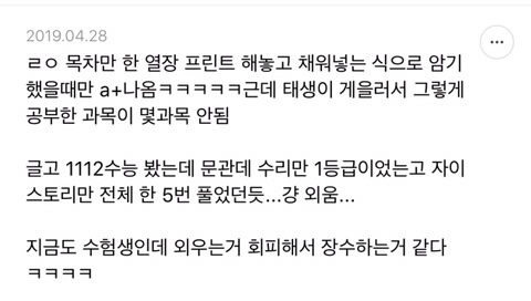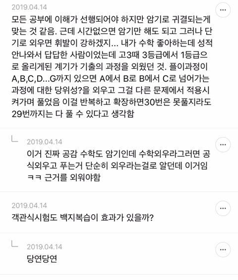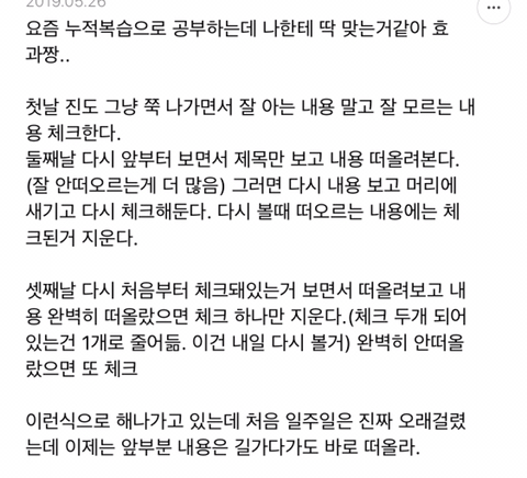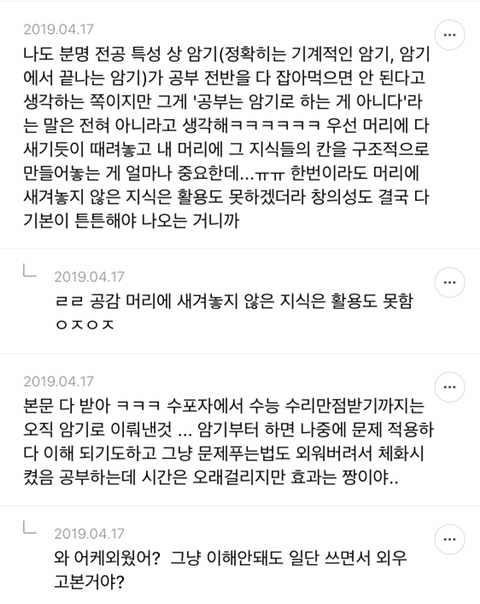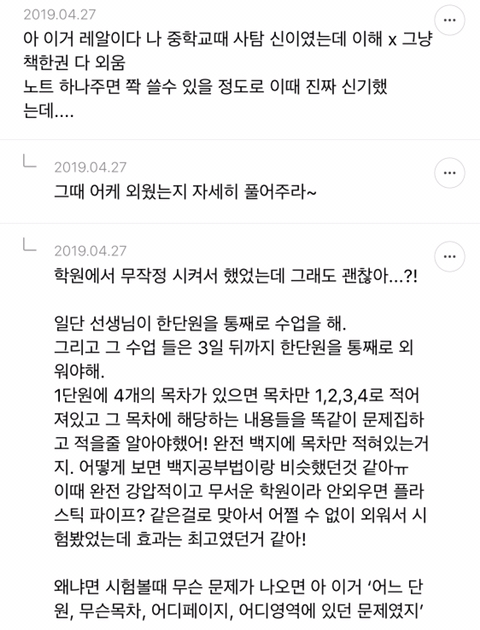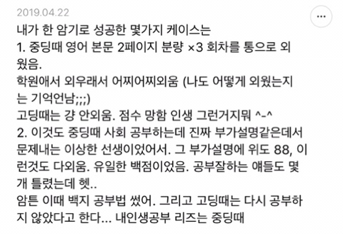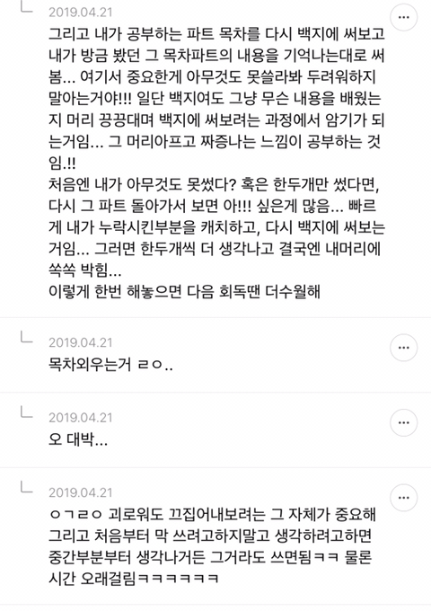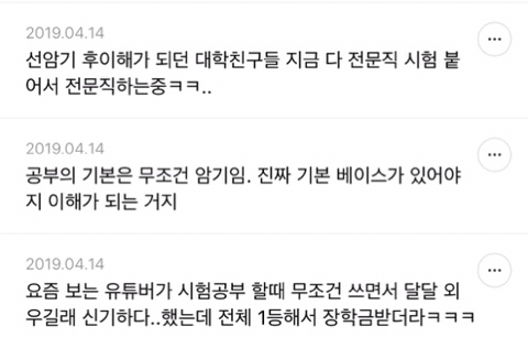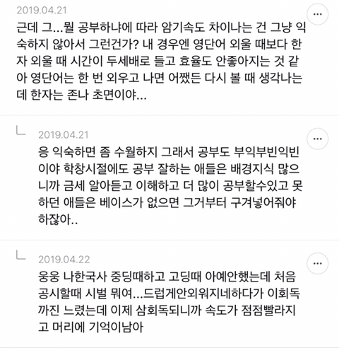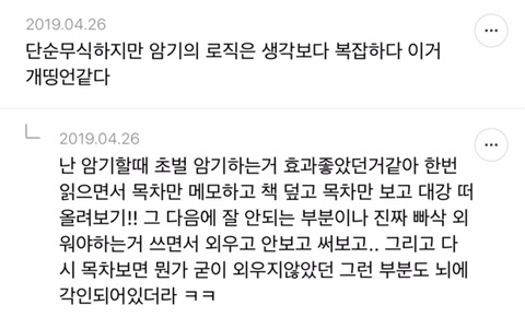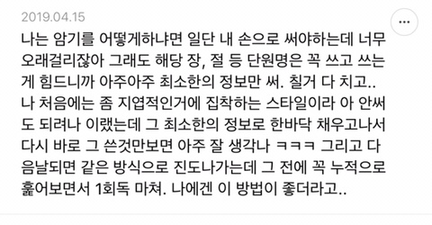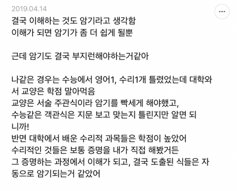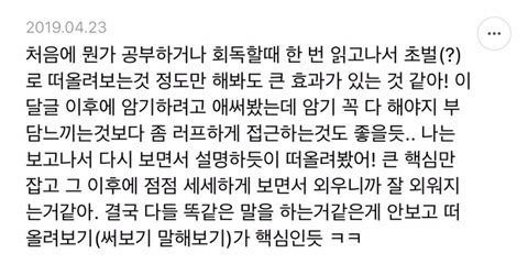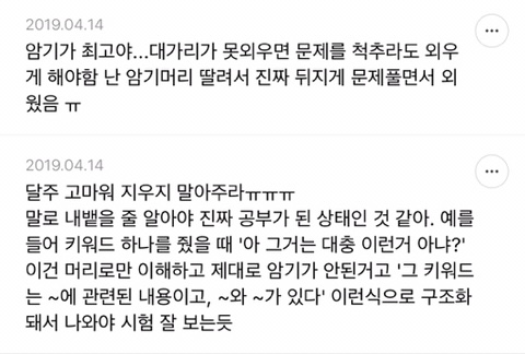 [스크랩] [흥미돋]단순 암기의 효과를 찬양하는 달글 캡쳐 작성자티맵로드|작성시간25.10.24|조회수18,788 목록 댓글 29 글자크기 작게가 글자크기 크게가 출처 : https://m.cafe.daum.net/subdued20club/ReHf/2457997?svc=cafeapphttp://m.cafe.daum.net/subdued20club/VrYr/207432?svc=cafeapp 다음검색 스크랩 원문 : *여성시대* 차분한 20대들의 알흠다운 공간 현재 게시글 추가 기능 열기 북마크 공유하기 신고 센터로 신고 댓글 댓글 29 댓글쓰기 답글쓰기 댓글 리스트 작성자덗굴 | 작성시간 25.10.25 작성자IOS26 | 작성시간 25.10.25 진짜 영어로 공부를 해야하는 상황인데 영어 단어도 모르겠고 이해 일도 안가서 걍 외움 . 외우다보니 모든게 다 맞춰지면서 이해 갔음 ㅋㅌㅋ 작성자두두리지마 | 작성시간 25.10.25 흥미로와 영어 외우러갑니다ㅜ 작성자댓따완 | 작성시간 25.10.25 공부 의욕 올라간다... 암기 베이스로 가야겟다 고마우 작성자푸드케이크 | 작성시간 25.10.25 암기 넘 어려워요ㅠㅠ 댓글 전체보기