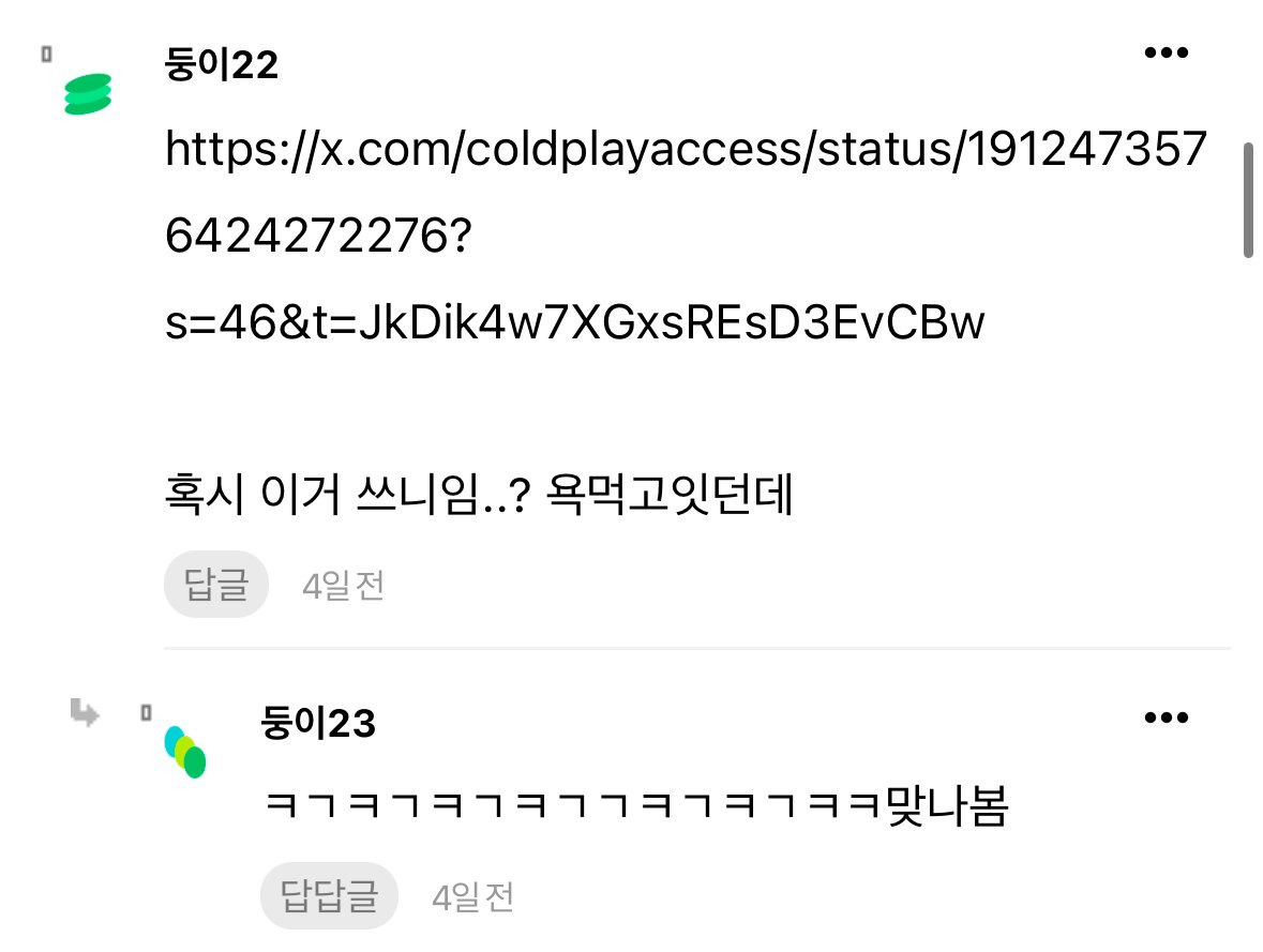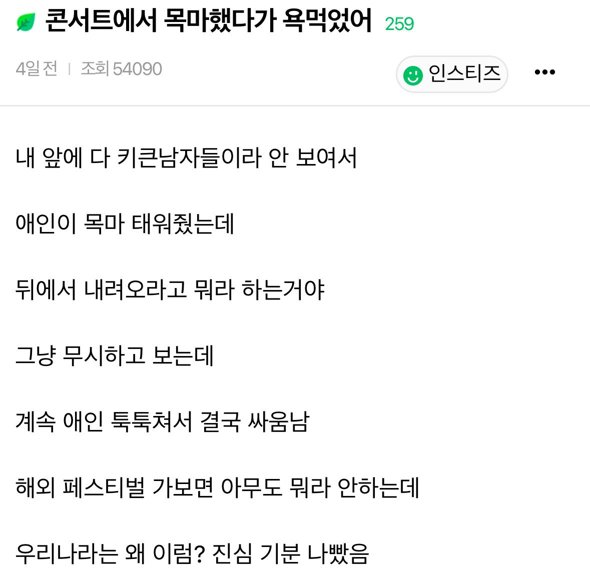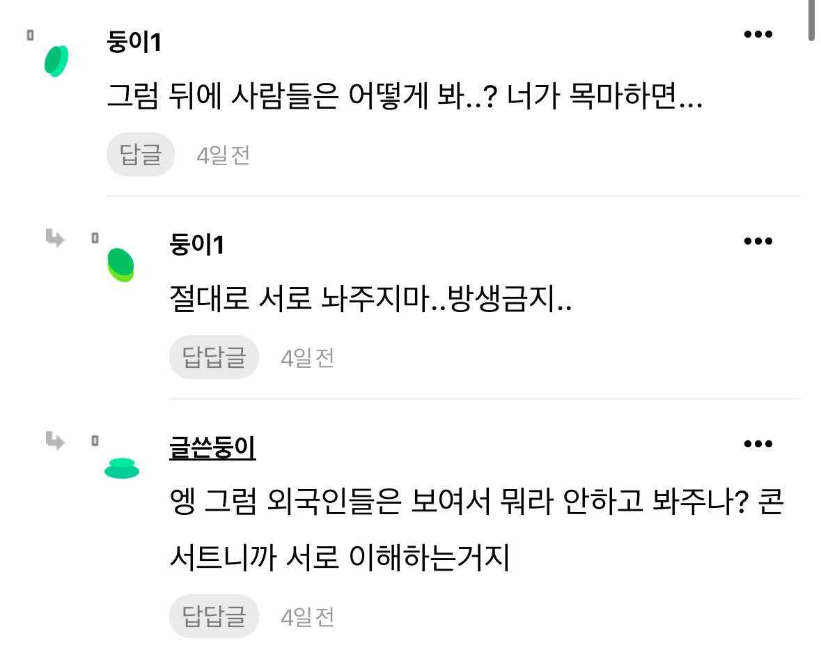 [스크랩] [흥미돋]콘서트에서 애인이 목마태워줬는데 욕먹었어 작성자폼폼부린|작성시간25.10.25|조회수27,450 목록 댓글 71 글자크기 작게가 글자크기 크게가 출처: 여성시대 폼폼부린 다음검색 스크랩 원문 : *여성시대* 차분한 20대들의 알흠다운 공간 현재 게시글 추가 기능 열기 북마크 공유하기 신고 센터로 신고 댓글 댓글 71 댓글쓰기 답글쓰기 댓글 리스트 작성자털복숭이 | 작성시간 25.10.25 뭔 다큰성인이 작성자털복숭이 | 작성시간 25.10.25 맛조개도아니고 작성자마르크 쌰갈 | 작성시간 25.10.25 뭔 안 보이는 애기도 아니고... 작성자맹고스므듸 | 작성시간 25.10.25 남돌콘 보내줘야 정신차리겟군 작성자수리후디 | 작성시간 25.10.26 콘서트니까 다들 이해하는거지 이러네ㅋㅋㅋㅋ님만 이해받는 포지션이잖아요ㅋㅋㅋㅋㅋ 댓글 전체보기