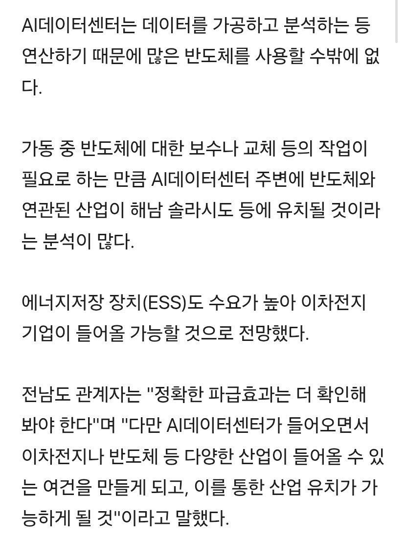 참고로 데이터센터가 고용이 없니 효과가 떨어지니 하기엔 어쨌든 몇조 규모의 투자고