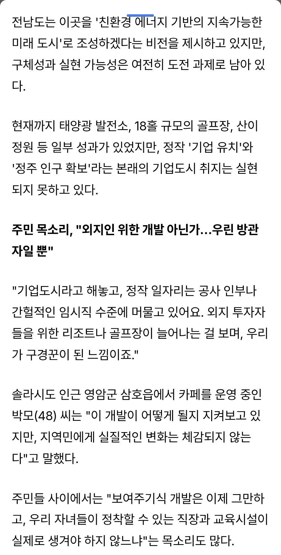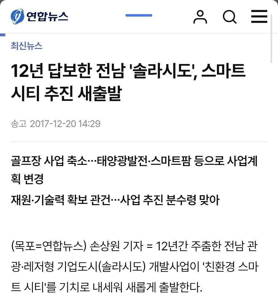 그렇게 해남이 낙점되어 솔라시도 개발 사업이 들어갔지만 지지부진한 면이 있었다