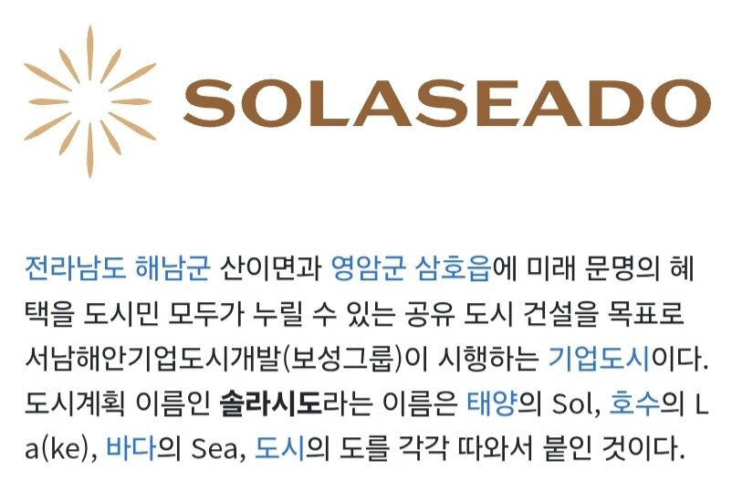 장작위키에 따르면, 솔라시도는 해남군과 영암군에 위치한 기업 도시다