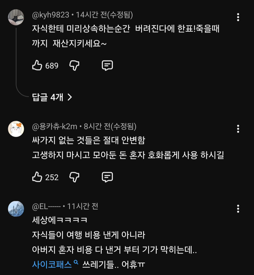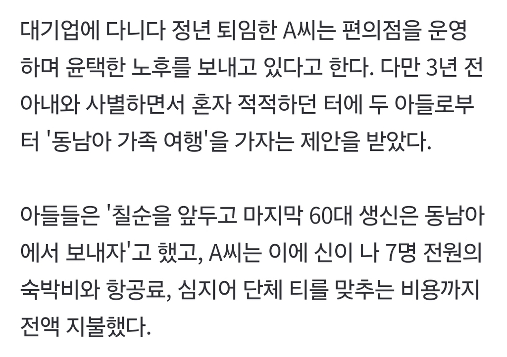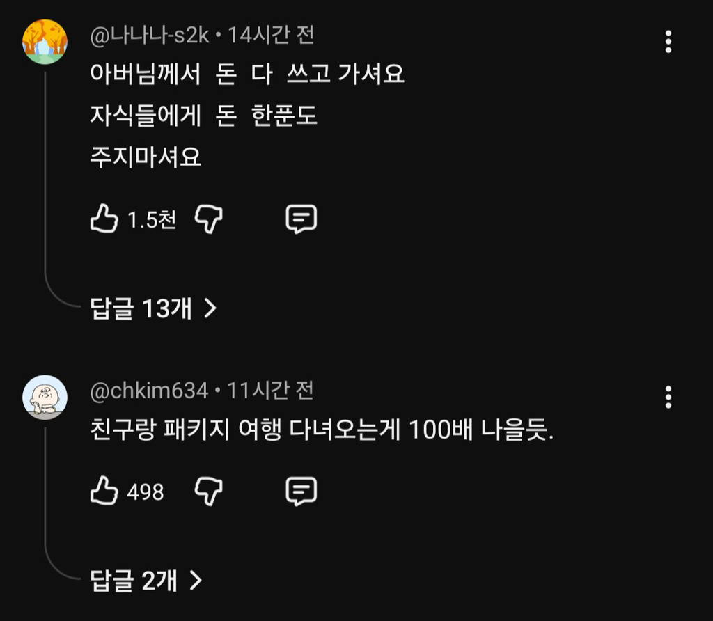 말이 효도 여행이지 걍 지들 여행비 아버지한테 쫀득하게 전가시켰네