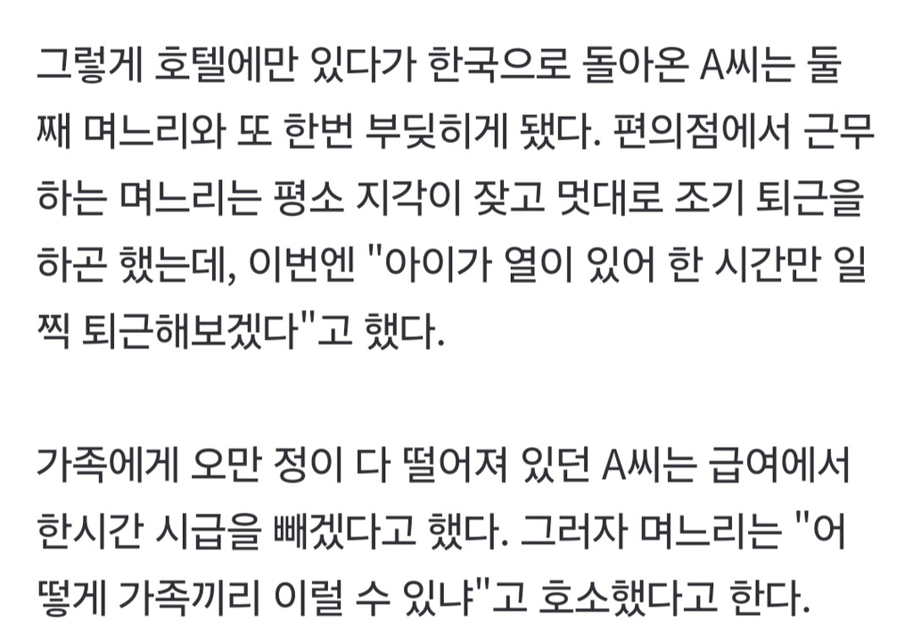 편의점 운영하던 중 둘째 며느리가 일하고 싶다 해서 시켰고 다른 알바생들보다 시급도 더 주고 있었다고 함..