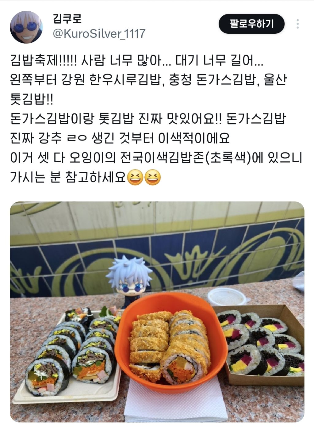 그럼에도 이날 오전에만 5만명 이상이 방문하면서 김밥 물량이 조기 소진됐다. 오는 26일까지 당초 예상했던 10만명이 넘는 25만명 이상이 찾을 것으로 전망되는 상황이다.