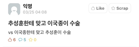 작성자동구라미라미 작성시간 25.10.25 추성훈이 수술하면 그냥 죽자나 ㅠㅠ 추성훈한테 맞을때 좀 빌어서 살살해달라고 할래