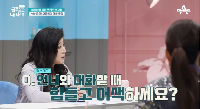 [스크랩] [흥미돋]금쪽이의 거친 행동에도 가만히 있는 엄마가 답답한 친언니 작성자보닌|작성시간25.10.25|조회수28,161 목록 댓글 26 글자크기 작게가 글자크기 크게가 출처: 여성시대 보닌상황 : 금쪽이가 사촌동생을 밀고 넘어뜨려서 다침> 그래서 금쪽이 엄마와 친언니가 진지하게 대화하는거 다음검색 스크랩 원문 : *여성시대* 차분한 20대들의 알흠다운 공간 현재 게시글 추가 기능 열기 북마크 공유하기 신고 센터로 신고 댓글 댓글 26 댓글쓰기 답글쓰기 댓글 리스트 작성자앰애함 | 작성시간 25.10.25 언니 존나 스트레스받겠다 작성자멸종위기사랑 | 작성시간 25.10.25 언니가 착하다 작성자마ㄹㅏ탕웨이 | 작성시간 25.10.26 이해안가네용 아들교육좀제발^^...잘좀하시길~~~~?이번편도 역시나 또 여자애가 피해보고있구나 작성자하개열받는다진짜루삐루 | 작성시간 25.10.26 하하 답답해 작성자BadaLee | 작성시간 25.10.26 아니 훈육을 하시라고요 댓글 전체보기