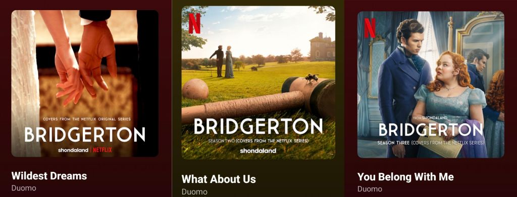 브리저튼은 매 시즌 테일러스위프트, 아리아나 그란데 등 유명 팝송들을 클래식 버전으로 편곡해서 ost로 쓰기로 유명