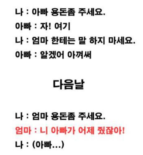 작성자대원칼국수 작성시간 25.10.26 우리 아빠는 진짜 말 안함 ㅋㅋㅋㅋ아빠가 몰래 카드도 줬다가 걸려서 둘 다 개털림 ㅋㅋㅋㅋㅋㅋㅌ