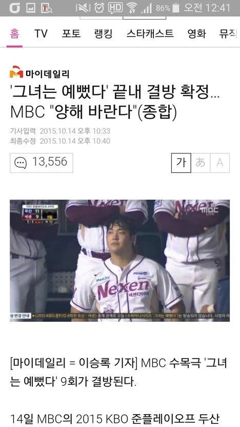 연초부터 계약되어 있던 야구중계를 포기하고 그녀는 예뻤다를 선택함